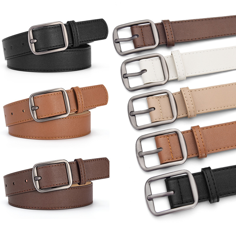 新しいシンプルな銀のボタンの3つのセットの女性のベルトの高級感は学生の青年のジーパンの細いベルトを飾ります。