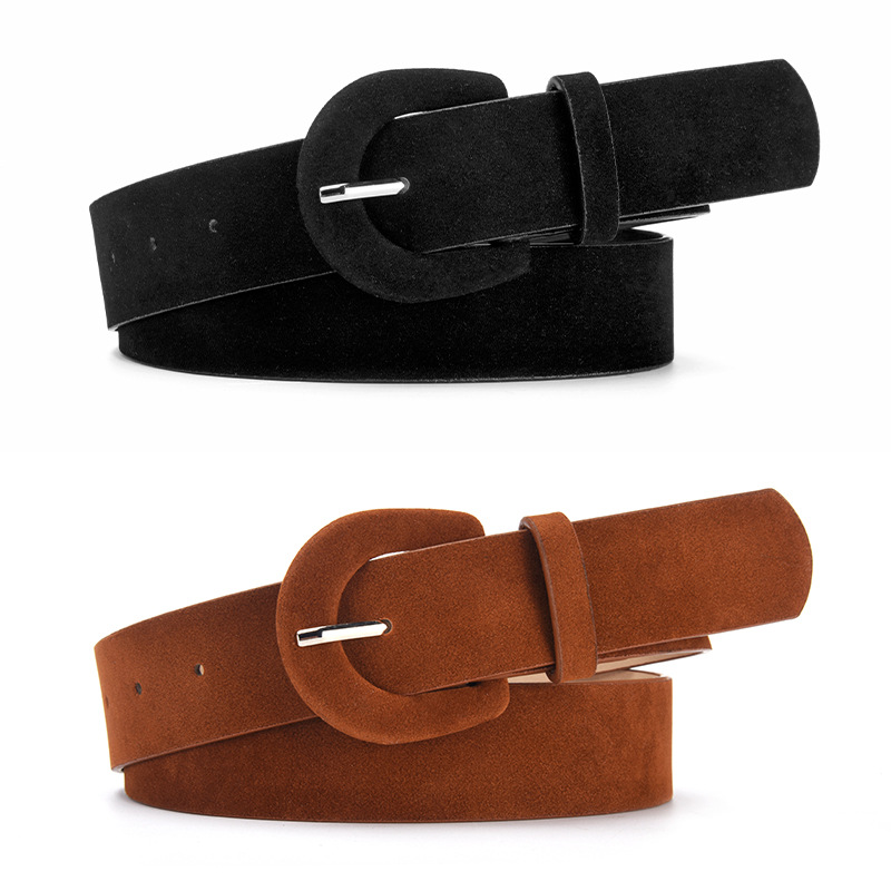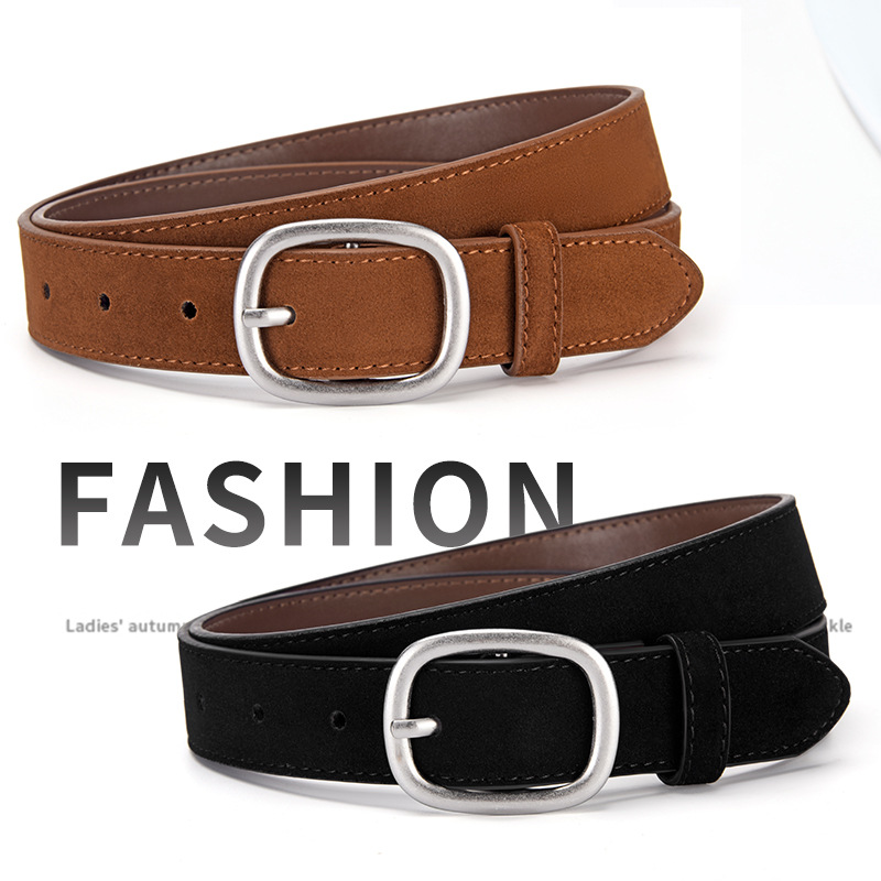 热款反绒PU女士腰带 仿鹿皮绒高品质日字扣皮裤带 跨境热销皮带女