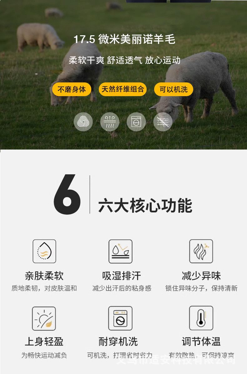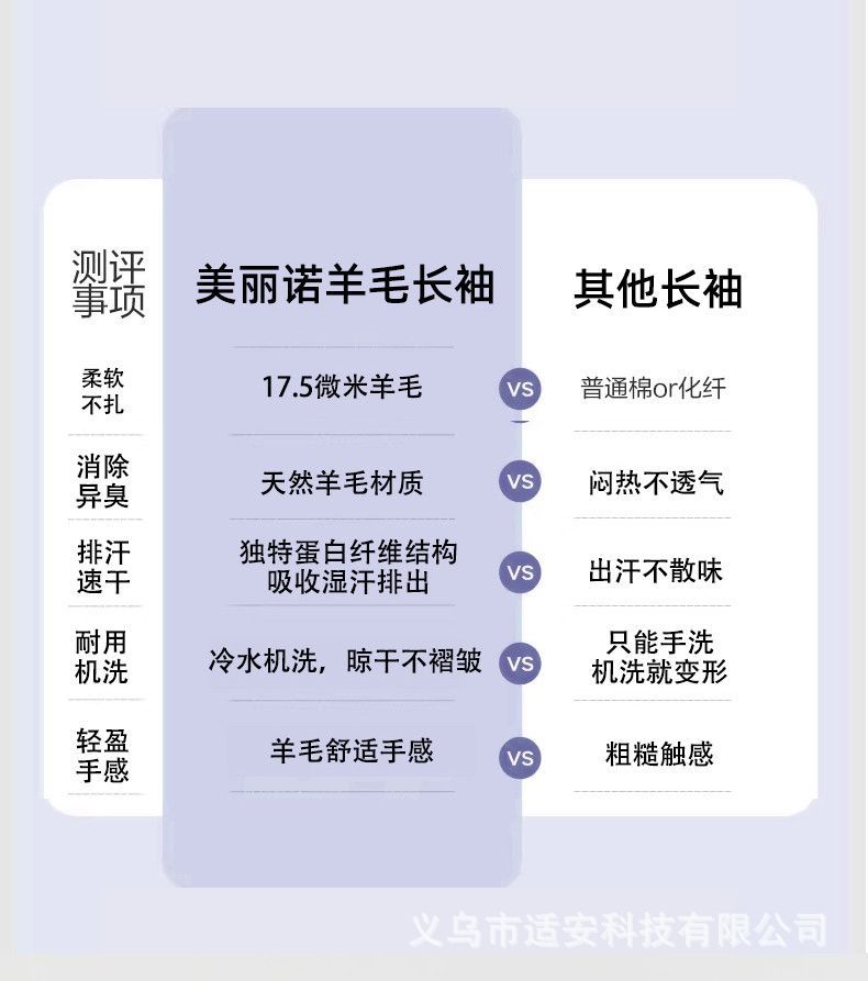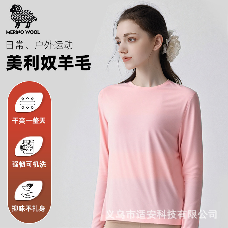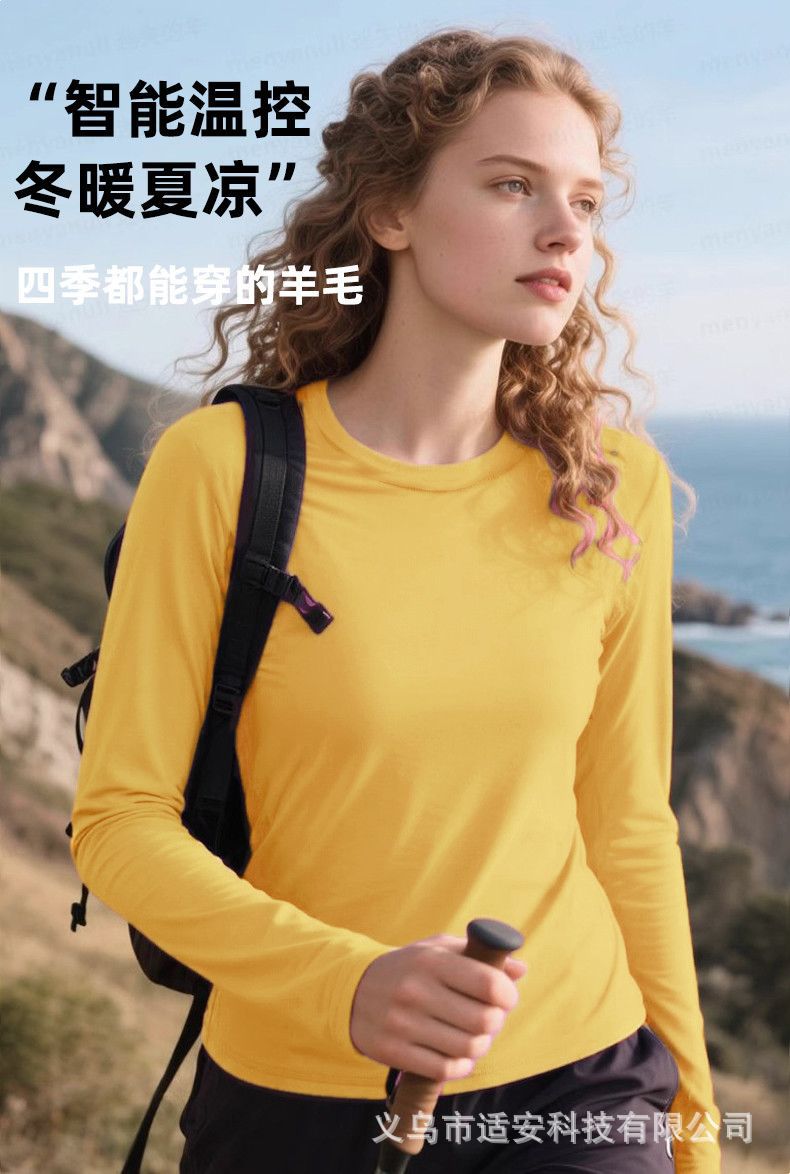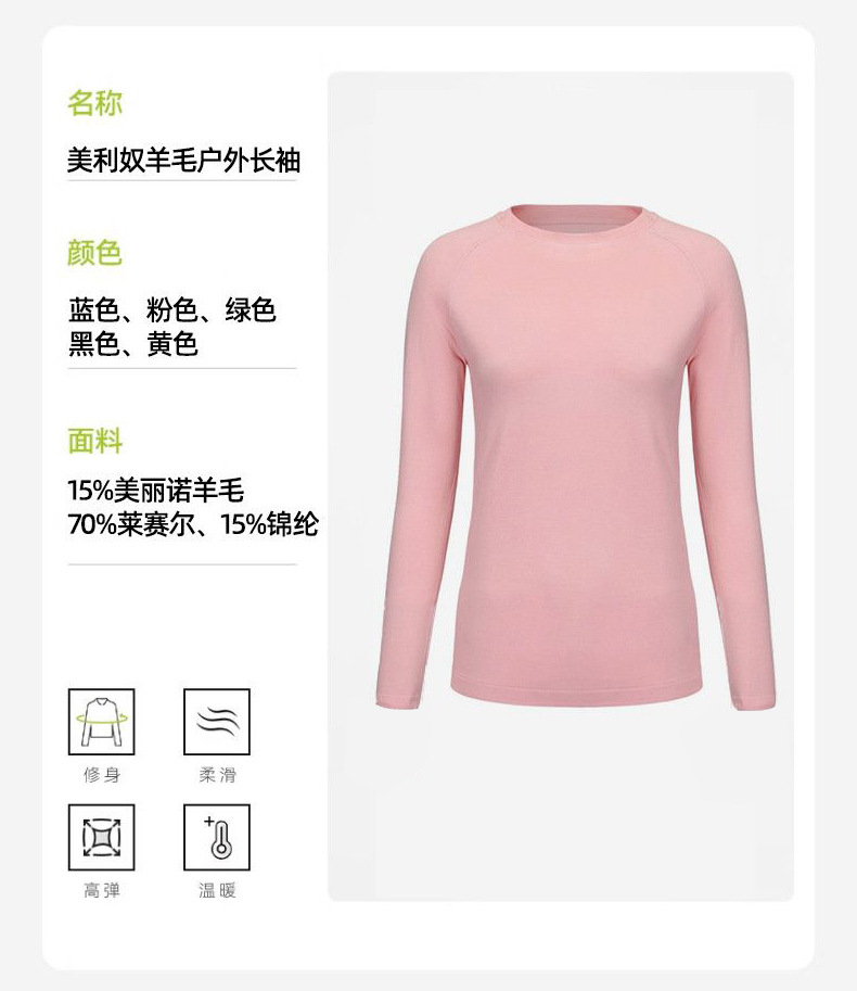 17.5微米美利奴羊毛速干衣女户外徒步登山瑜伽保暖美丽诺长袖时尚
