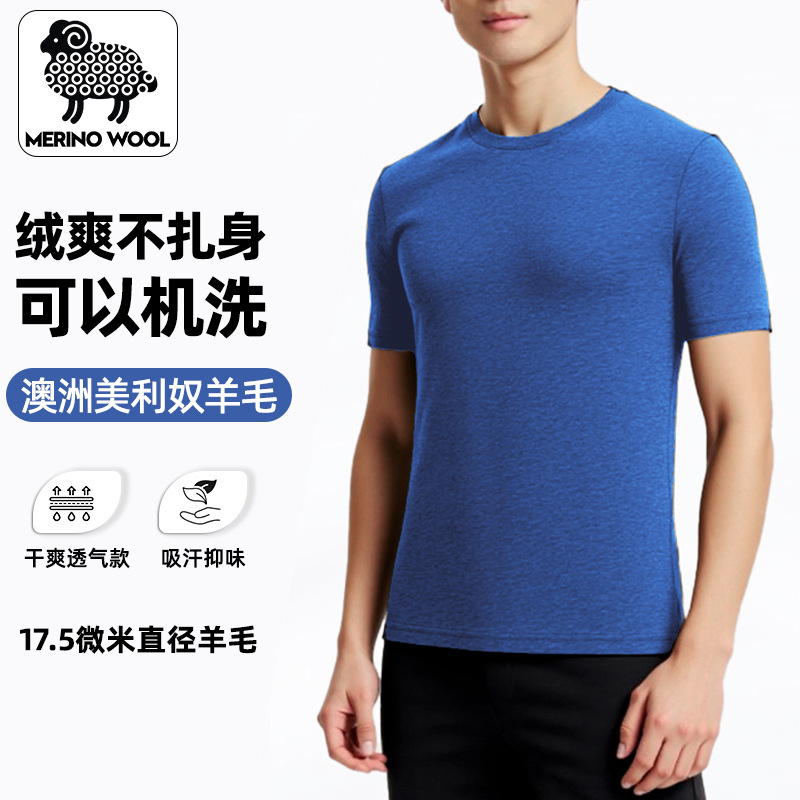 メリノウールメンズアウトドア半袖通気性ラウンドネック登山ランニングスポーツTシャツ速乾ウールインナーウェア