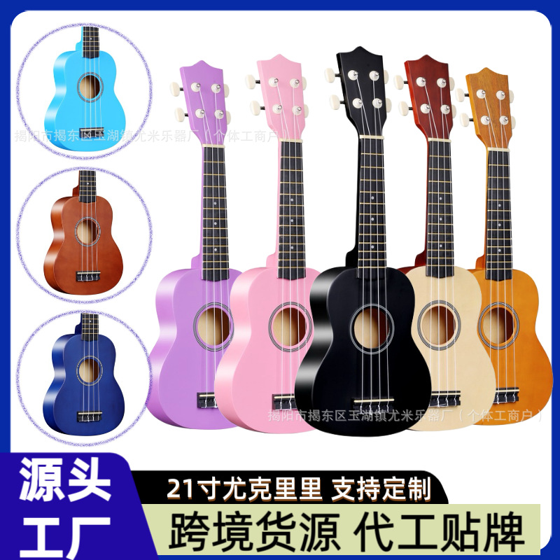 跨境21寸尤克里里初学者儿童早教四弦ukulele彩色小吉他乐器批发