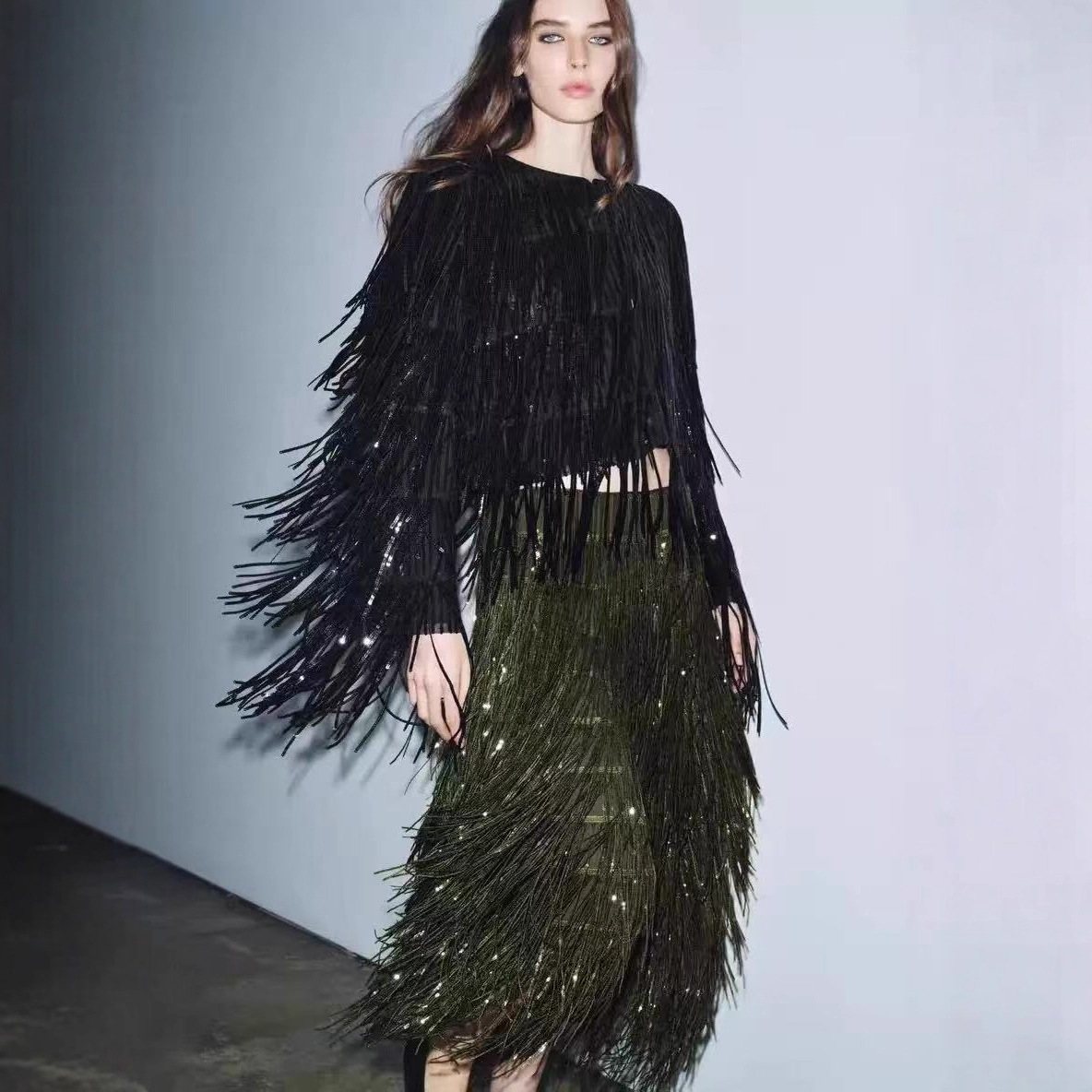 GY26167时尚珠片流苏派对半身裙ZA速卖通秋冬新品