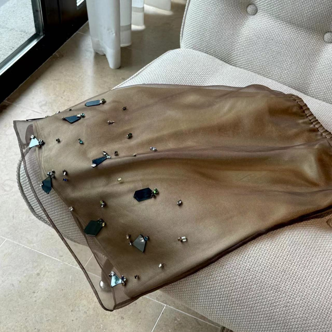 现货重工钉珠纱裙2025新款松紧腰头绝美巨好看的高端精致半身裙