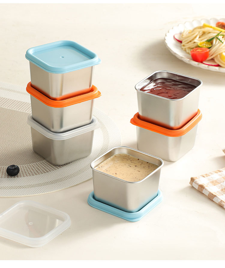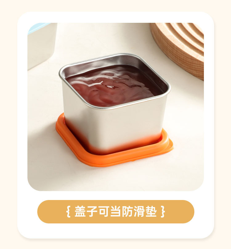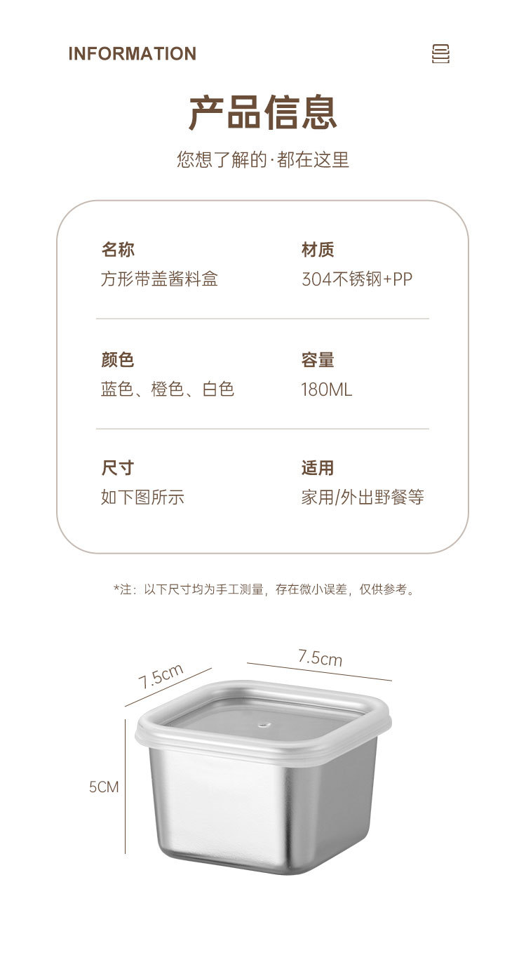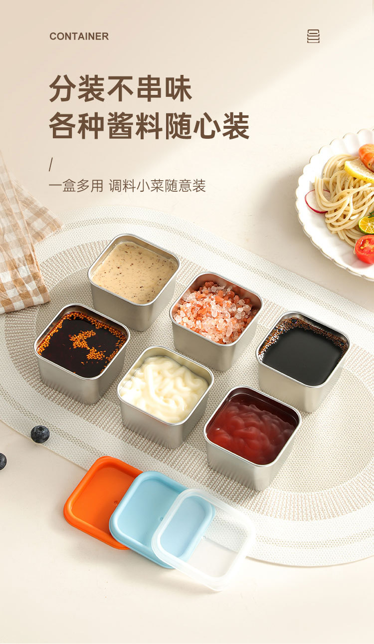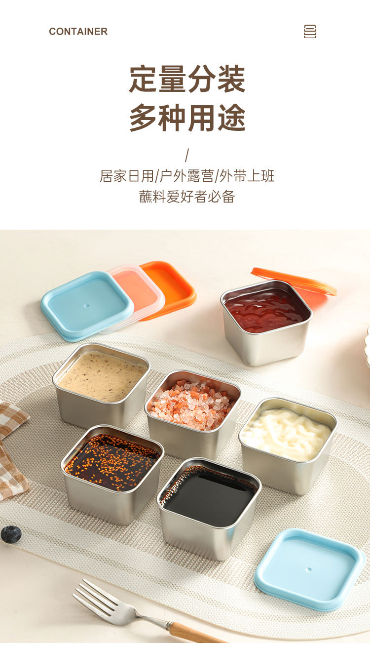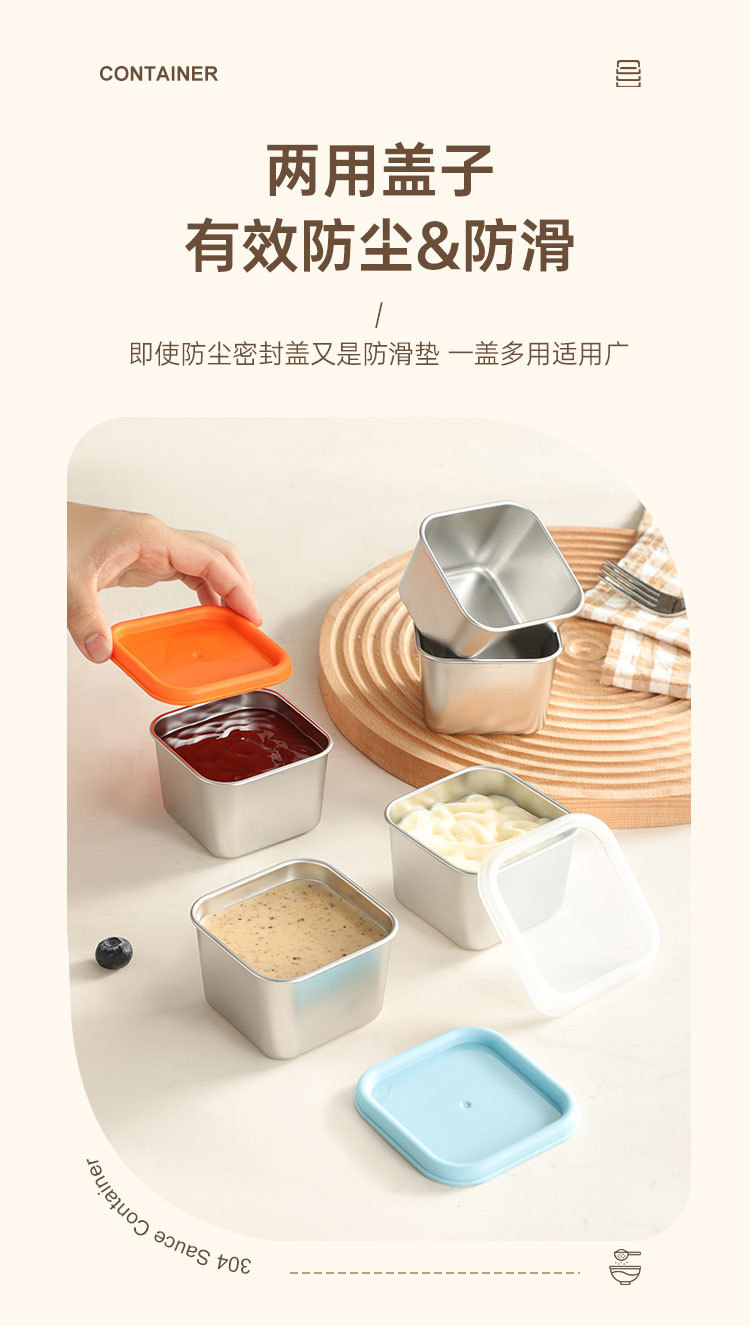 跨境304不锈钢酱料盒厨房小型带盖调味收纳盒商用餐厅方形调料罐