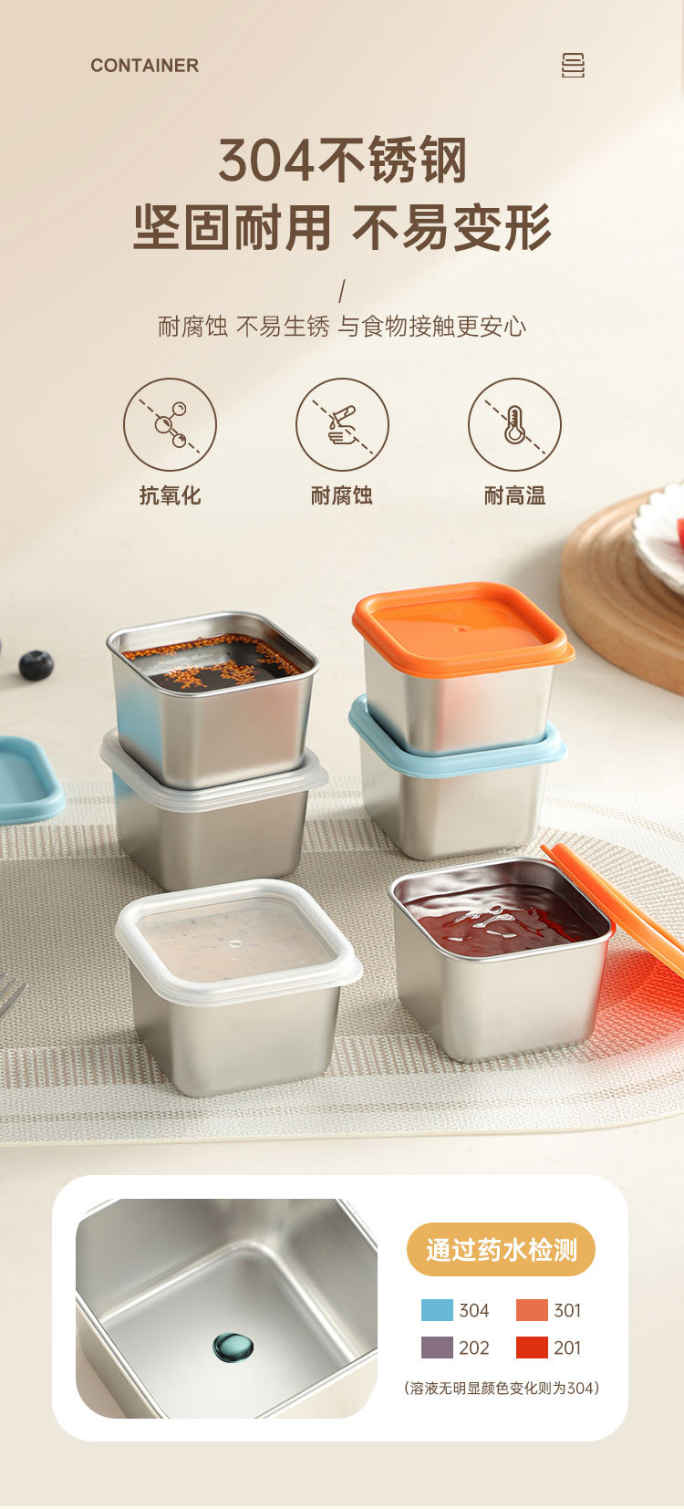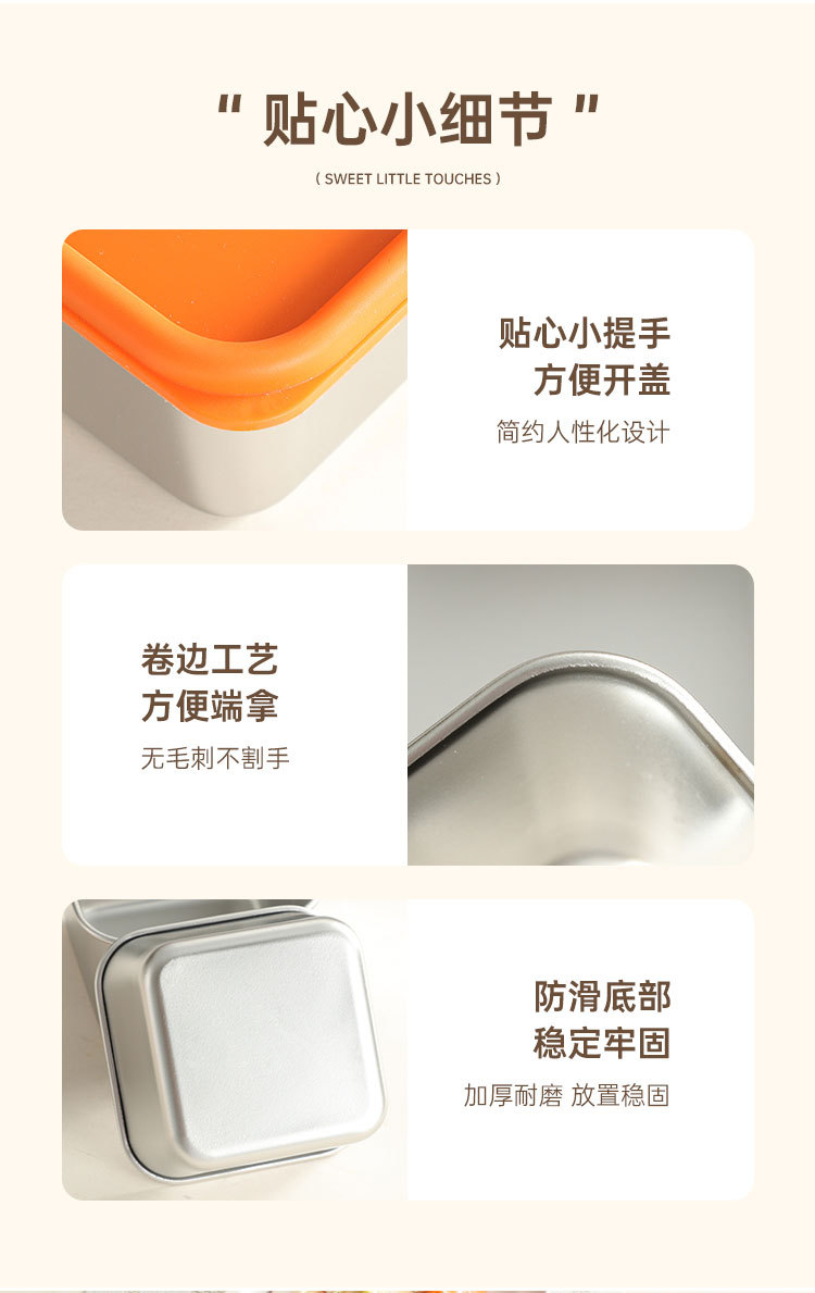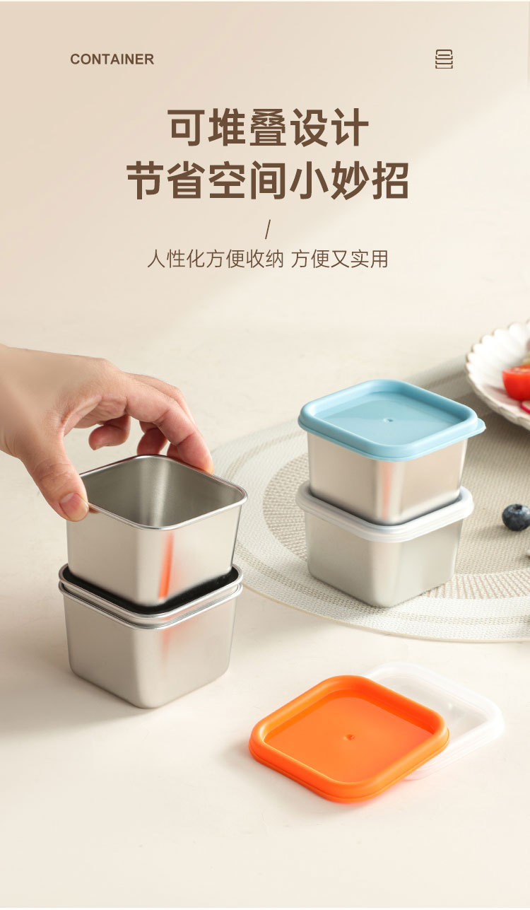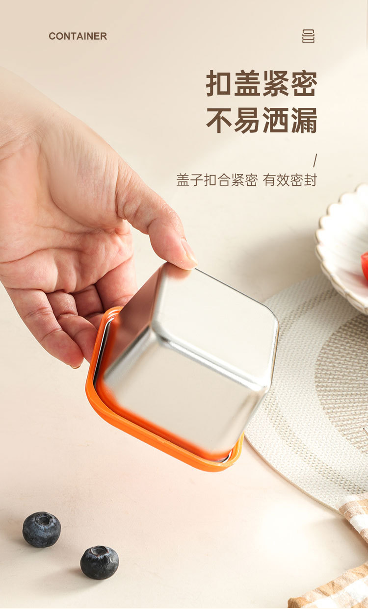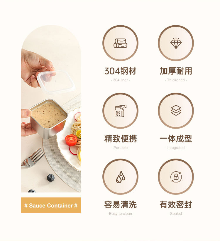 跨境304不锈钢酱料盒厨房小型带盖调味收纳盒商用餐厅方形调料罐