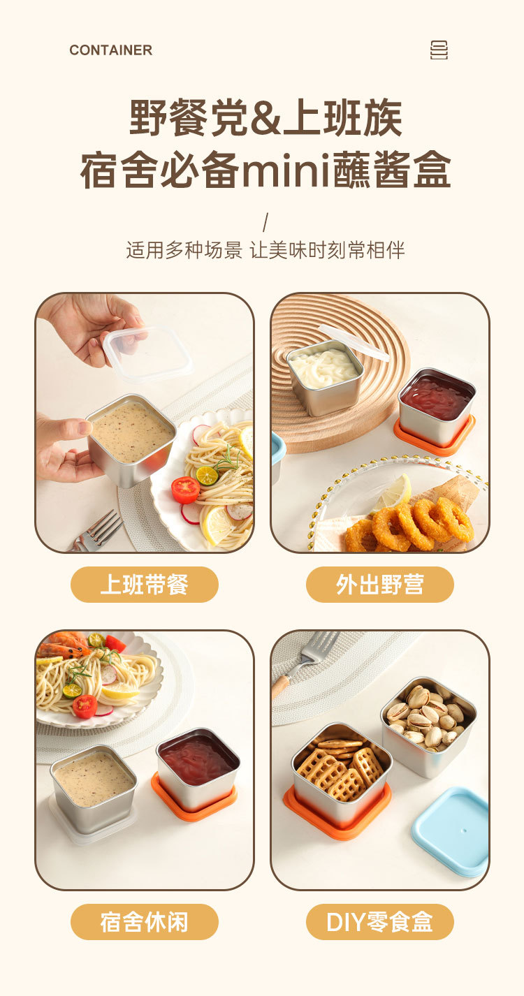 户外便捷不锈钢304迷你酱汁杯带盖家用番茄沙拉酱菜盒调味蘸料碟