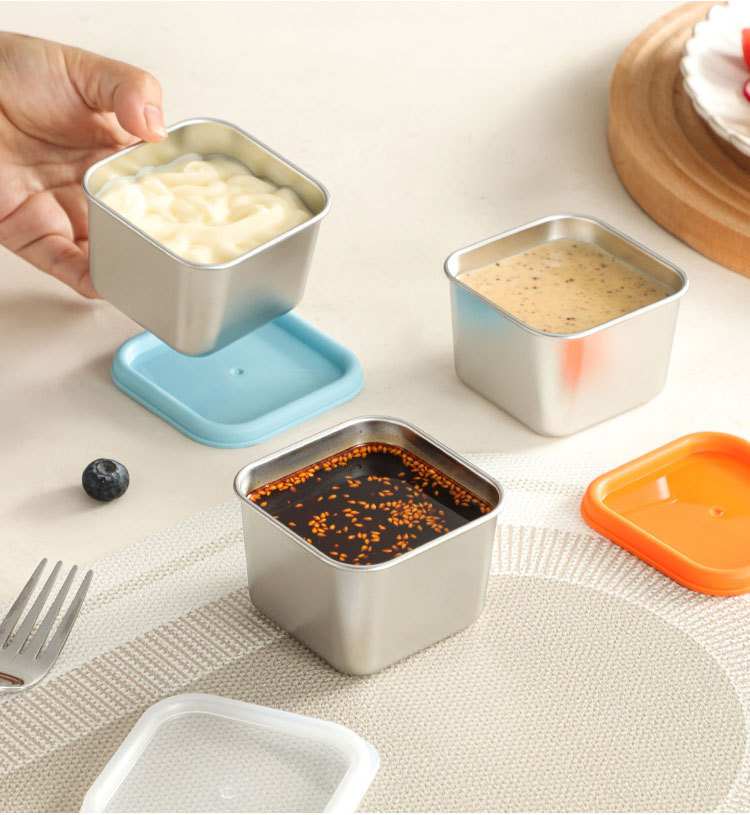 国境を越えた304ステンレスのソースカップの四角いジャムボウルの蓋付き携帯調味料皿アマゾンのソースカップ