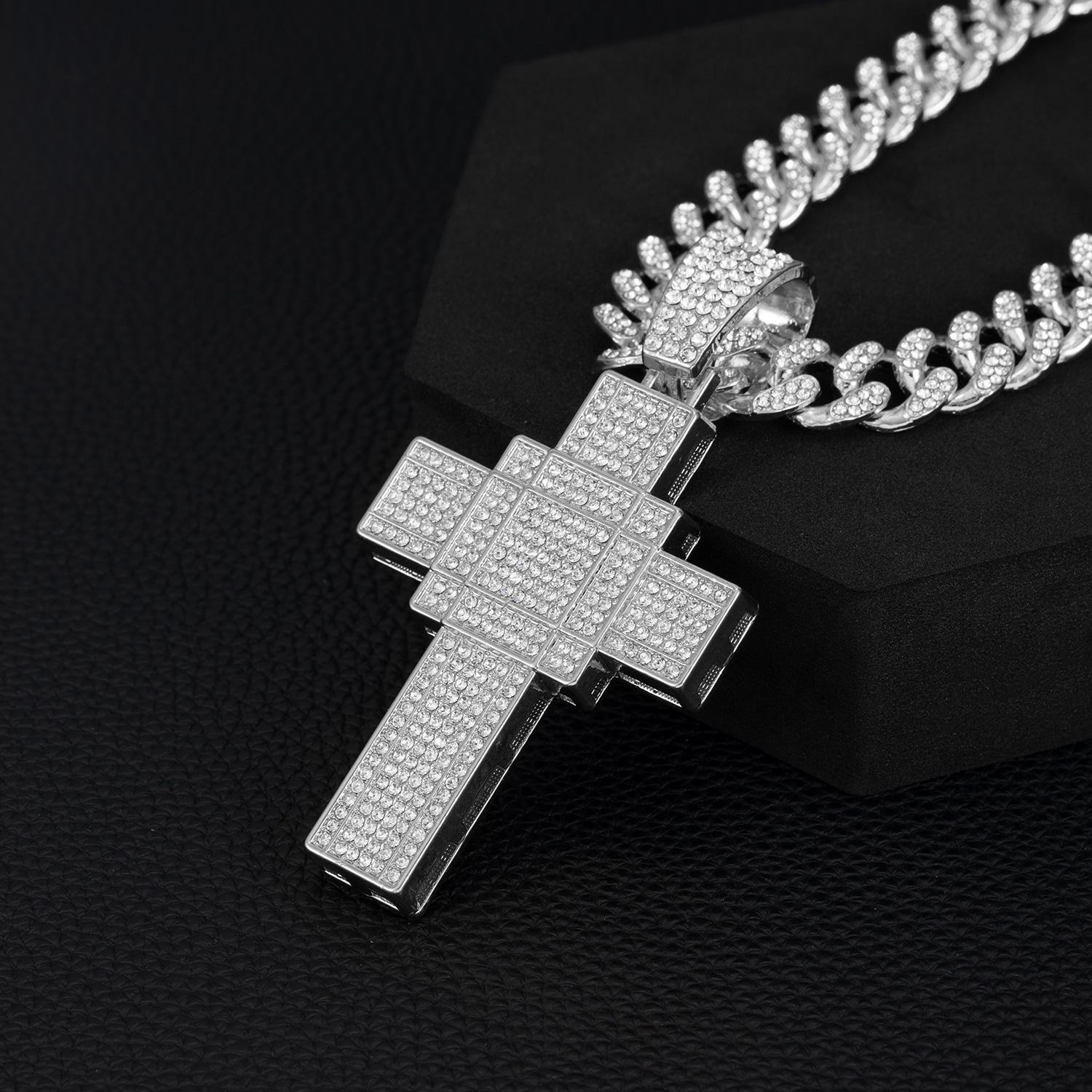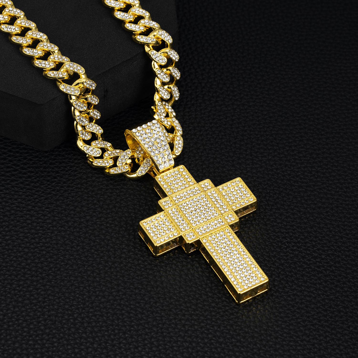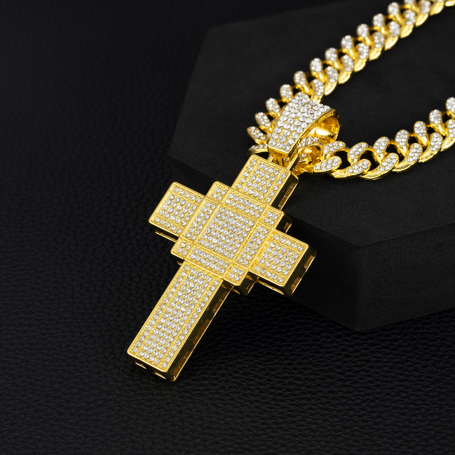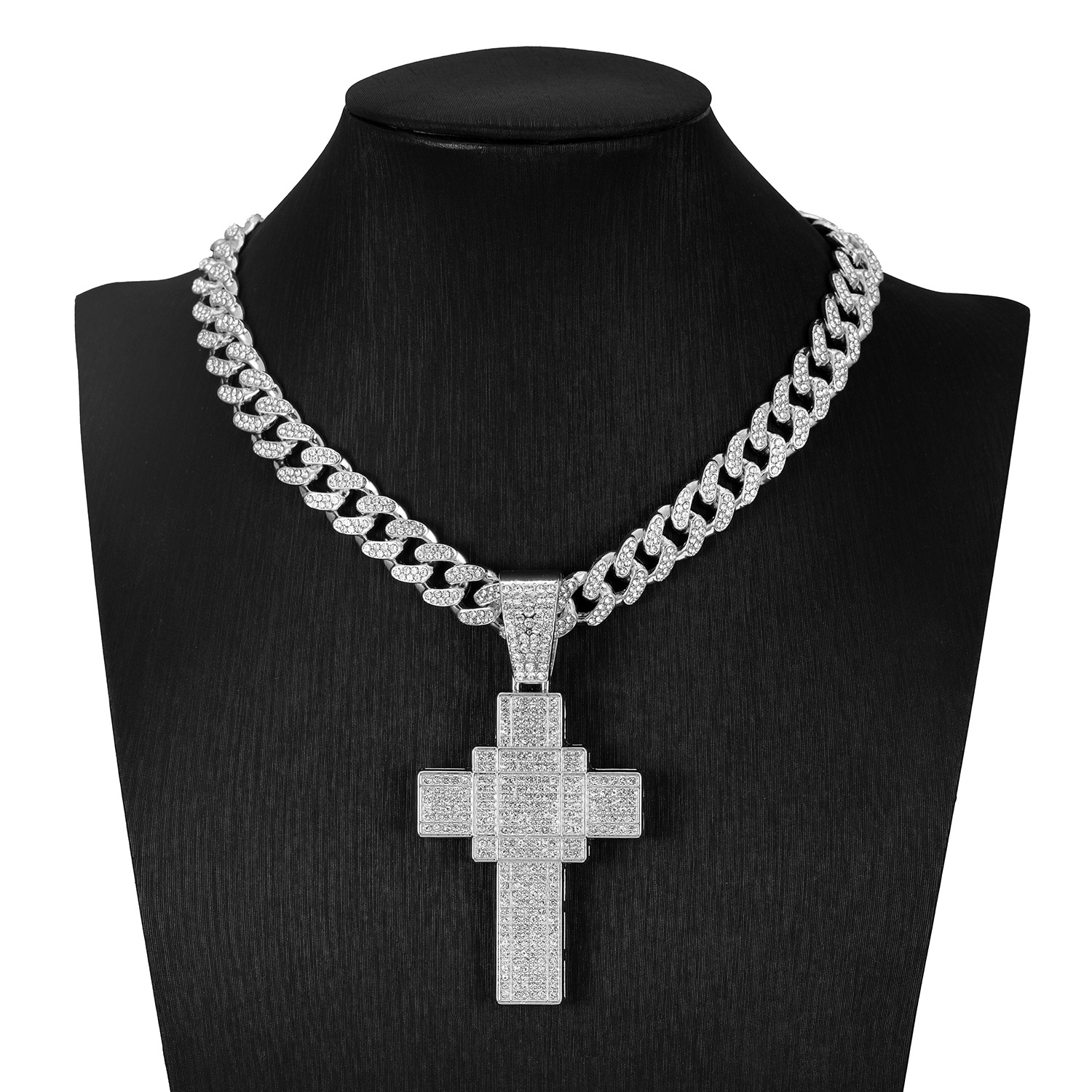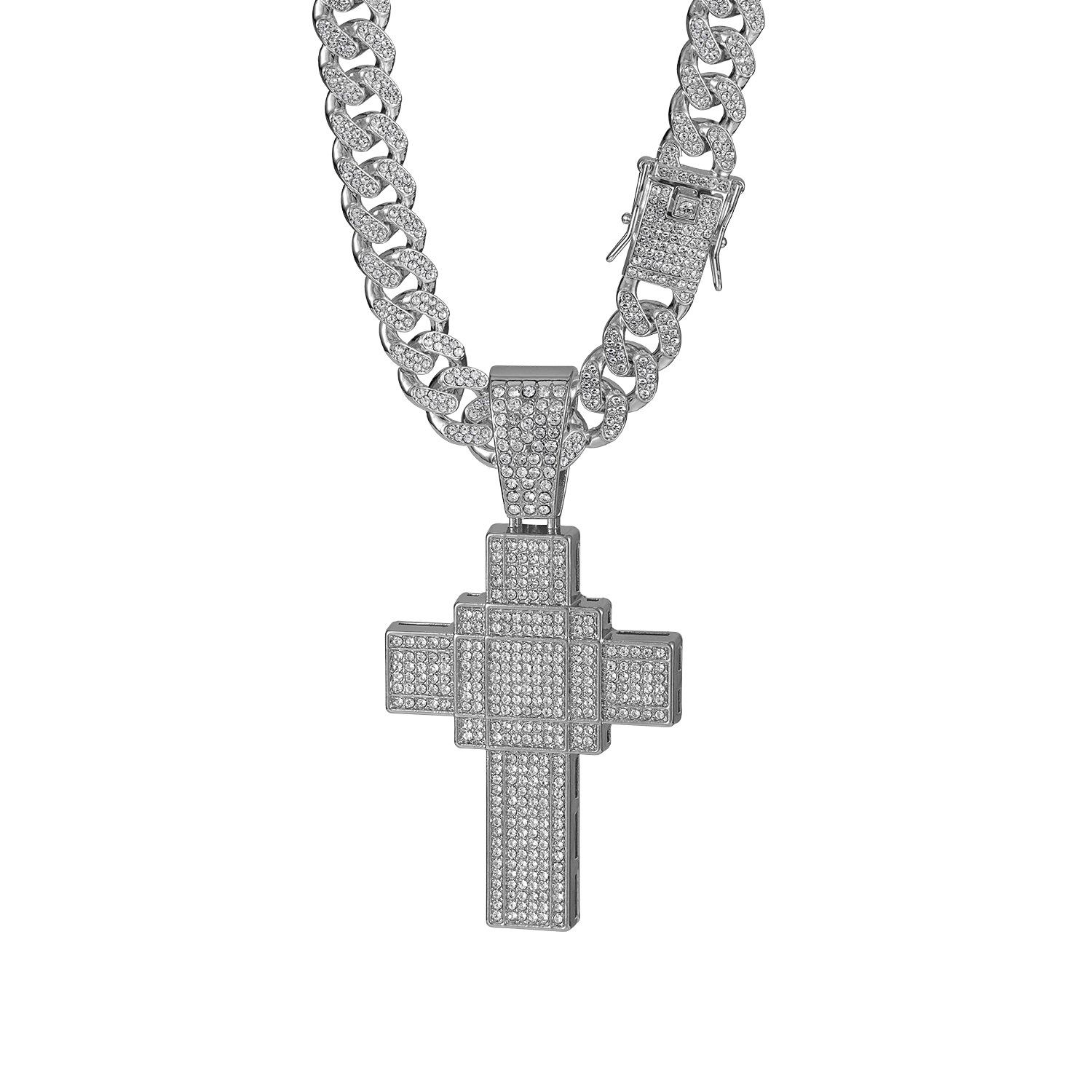 国境を越えた新製品クリエイティブパーソナライズされたヒップホップ合金フルダイヤモンドペンダントフルダイヤモンドクロスネックレスキューバチェーン卸売