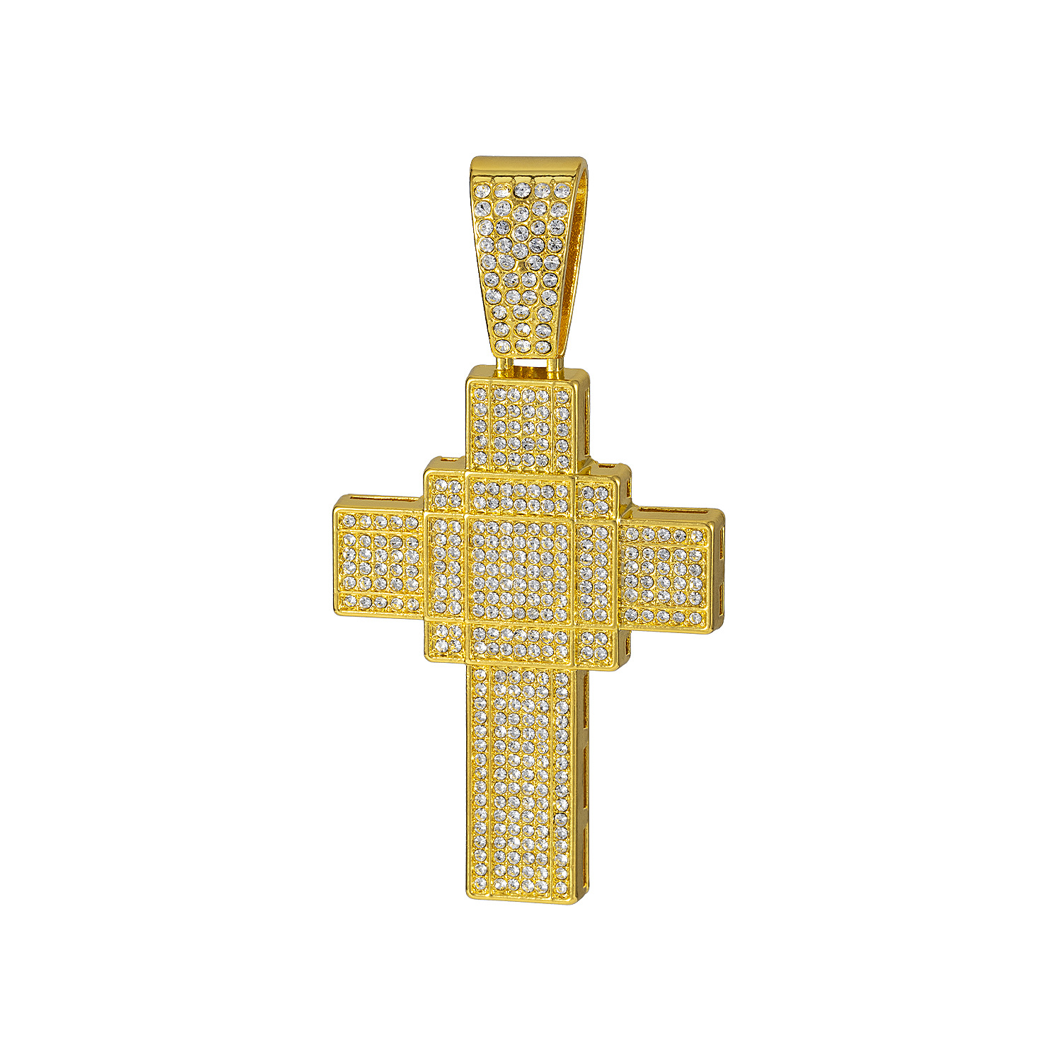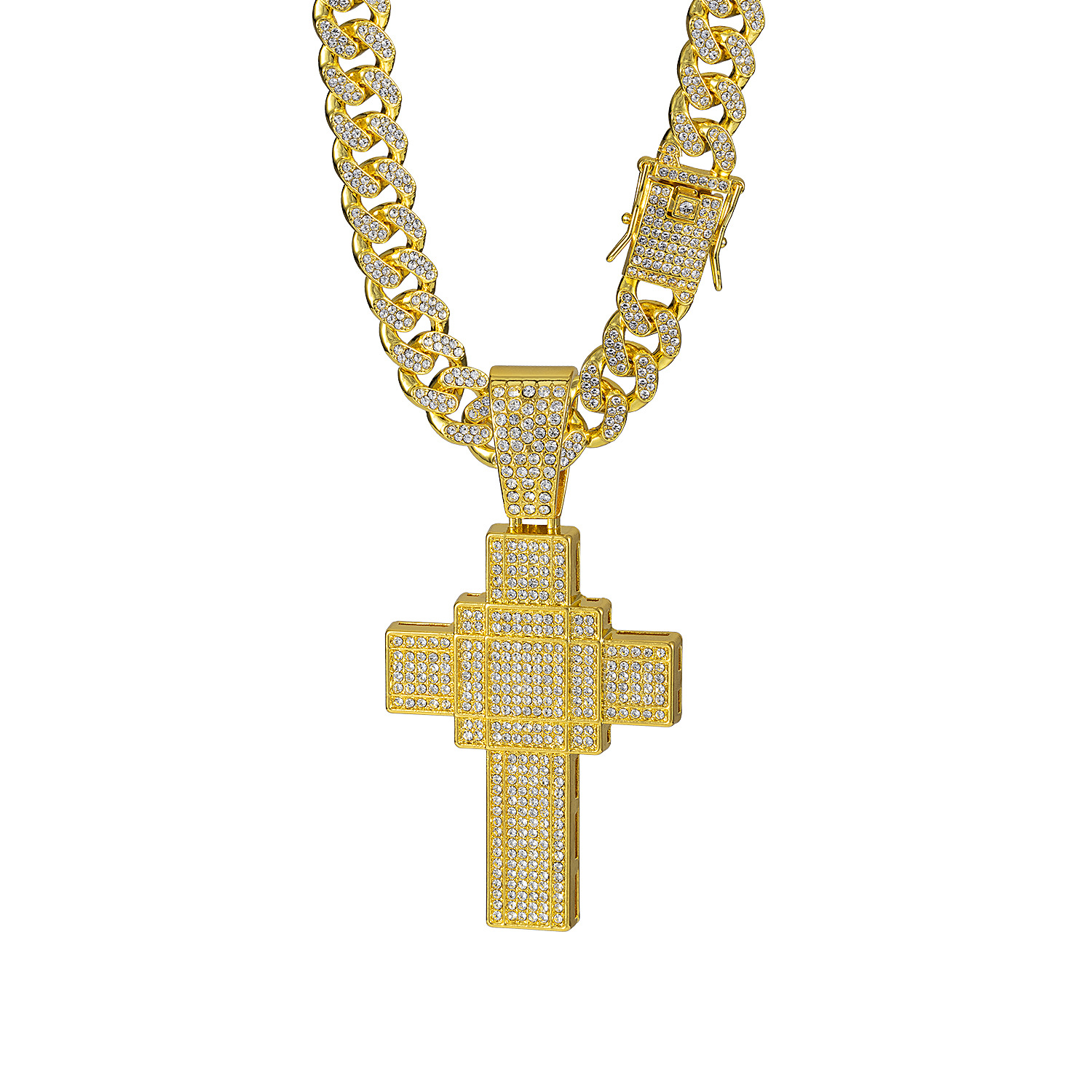 ヨーロッパとアメリカのヒップホップフルダイヤモンドレトロ中空クロスペンダントネックレスダイヤモンドペンダントメンズネックレスゴールドメッキダイヤモンドネックレス