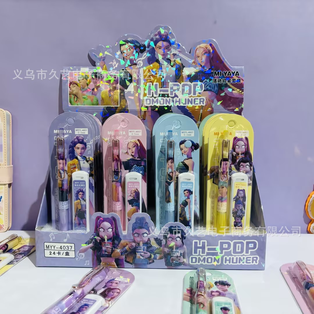 跨境KPOP猎魔女团自动铅笔套装新款周边次元动漫儿童写字练字铅笔