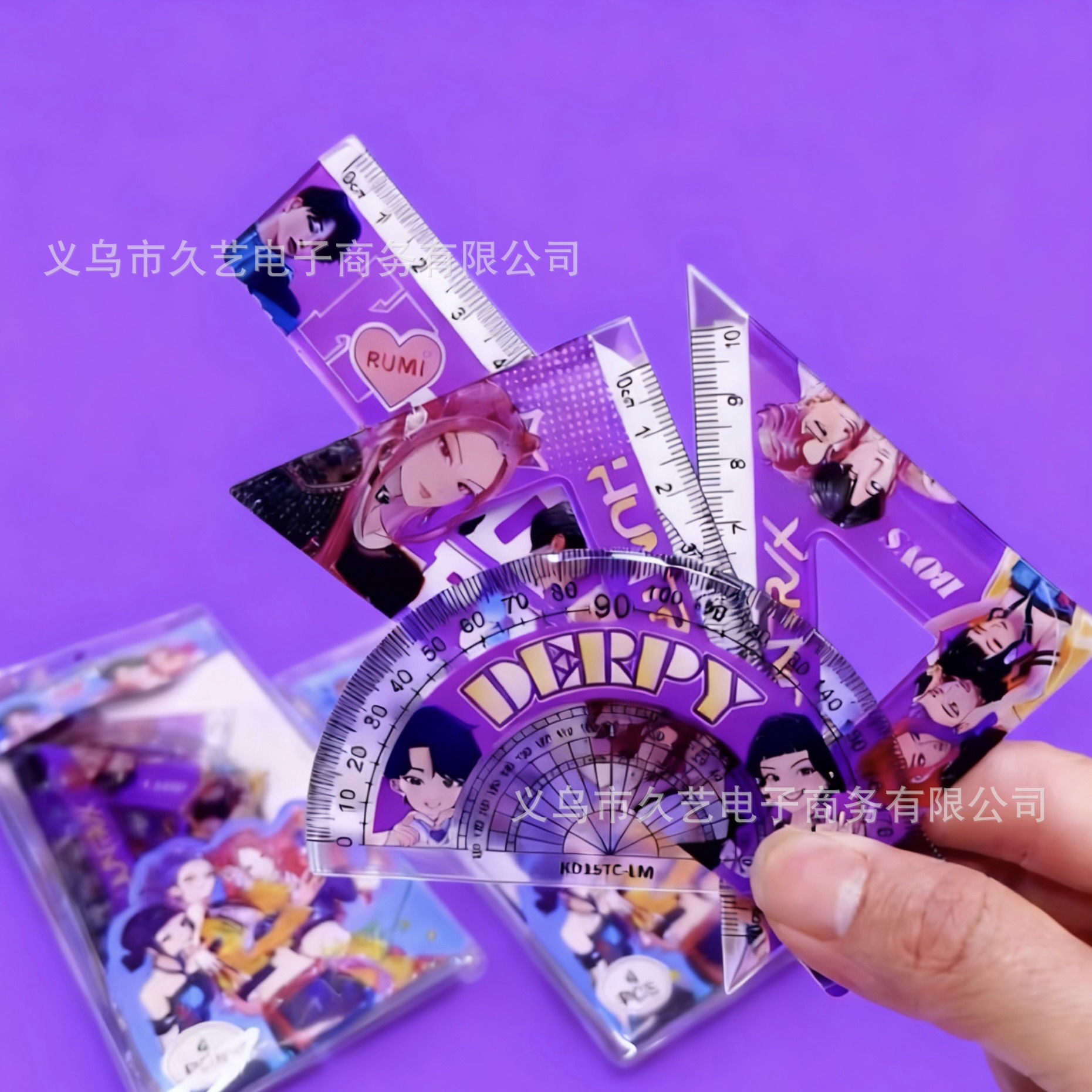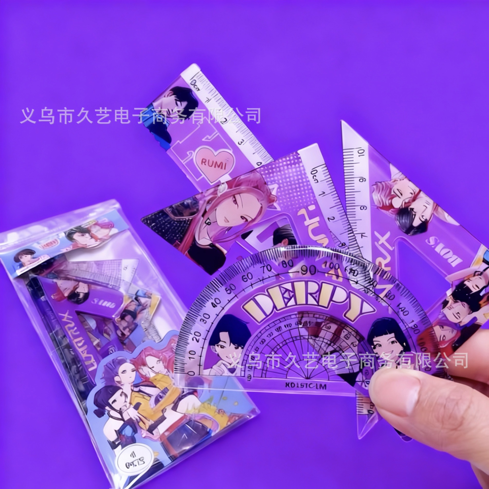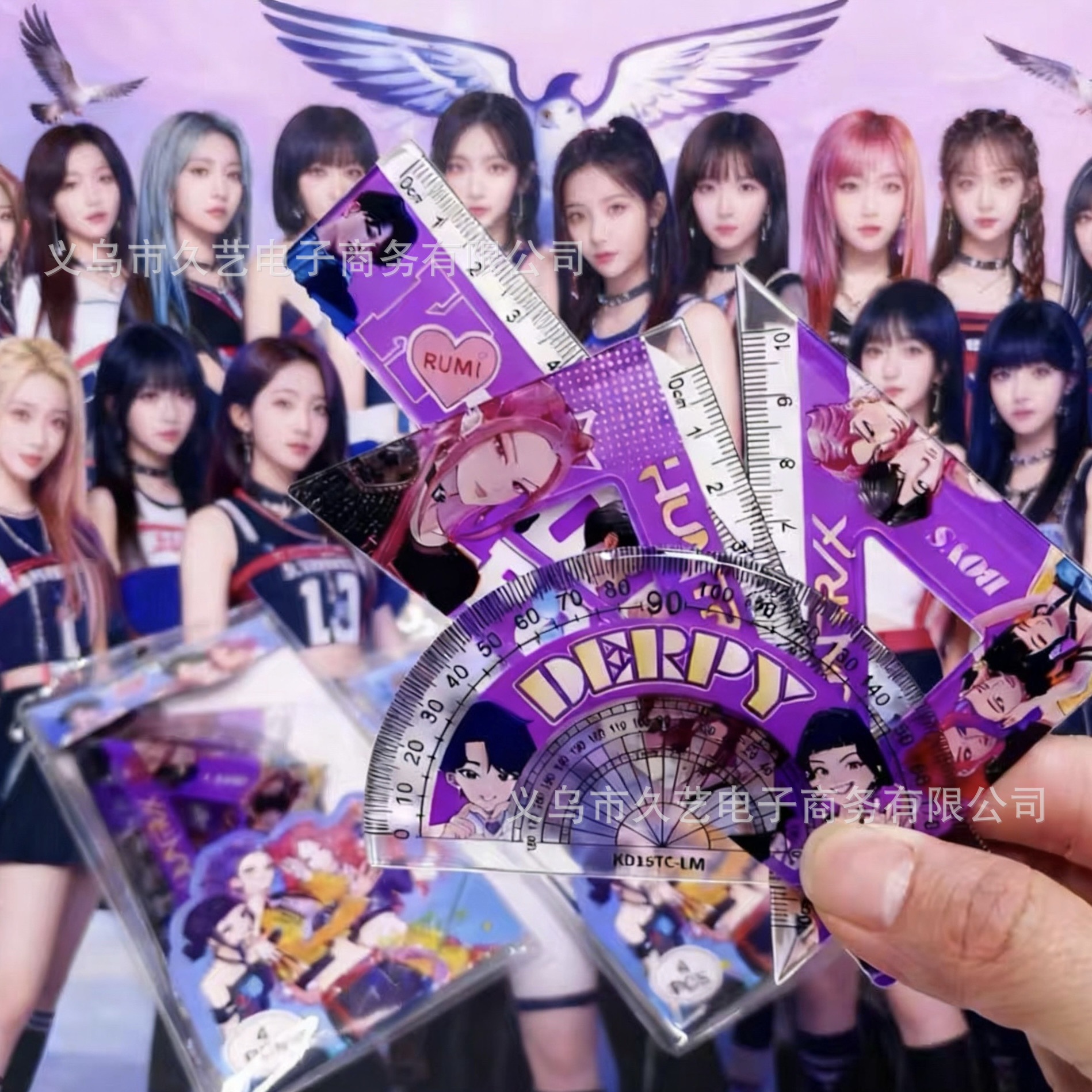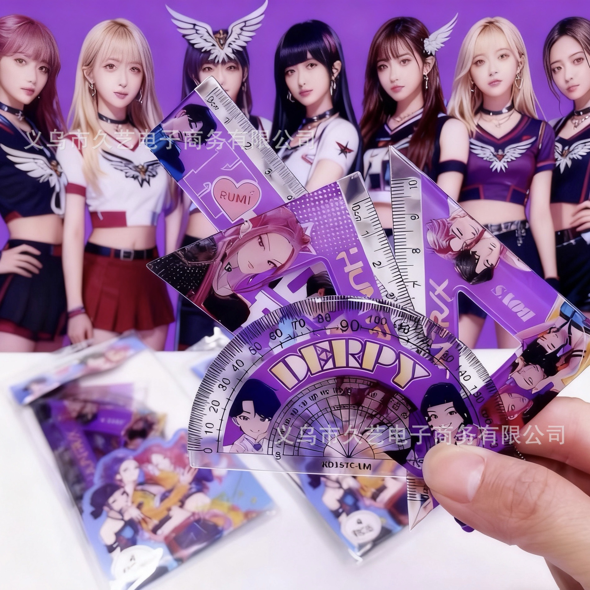 跨境新品KPOP猎魔女团套尺高颜值小学生直尺刻度尺卡通文具三角尺