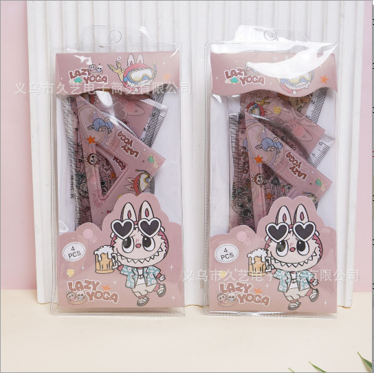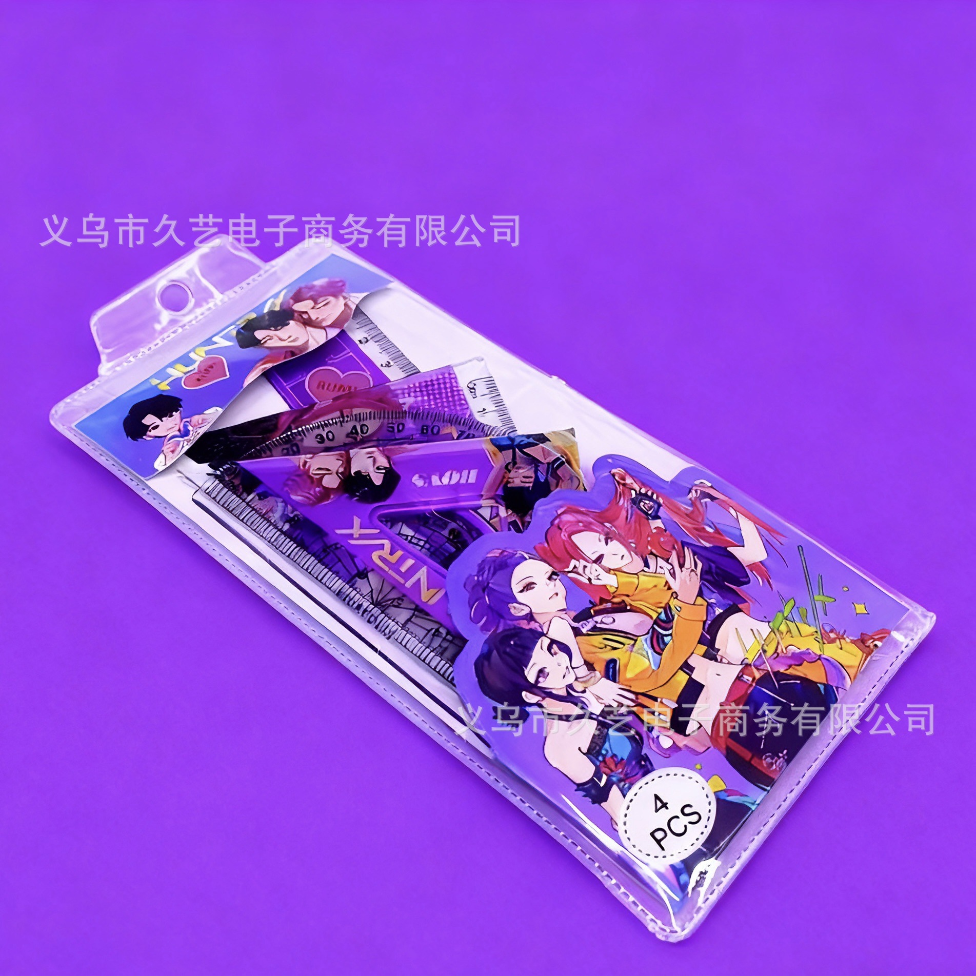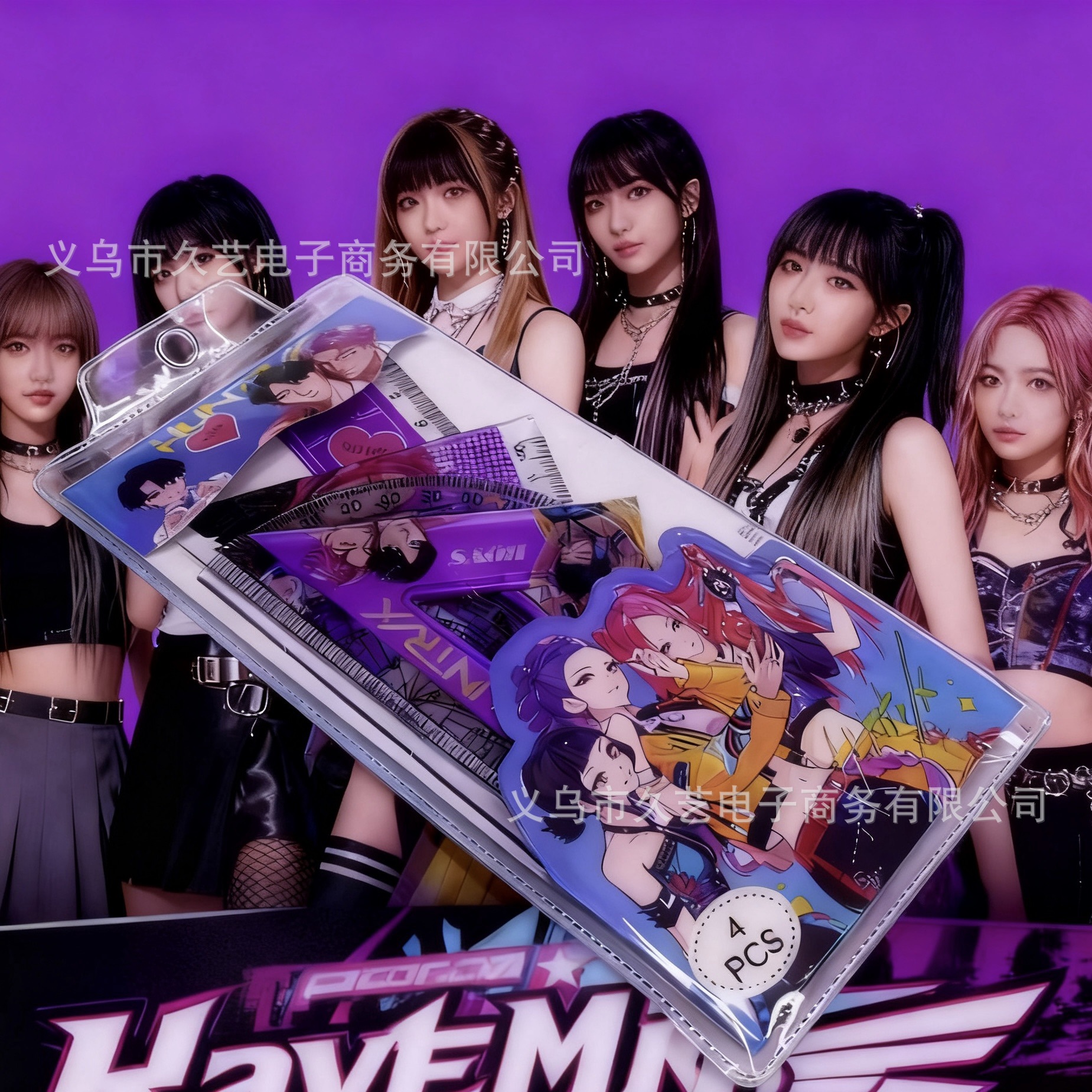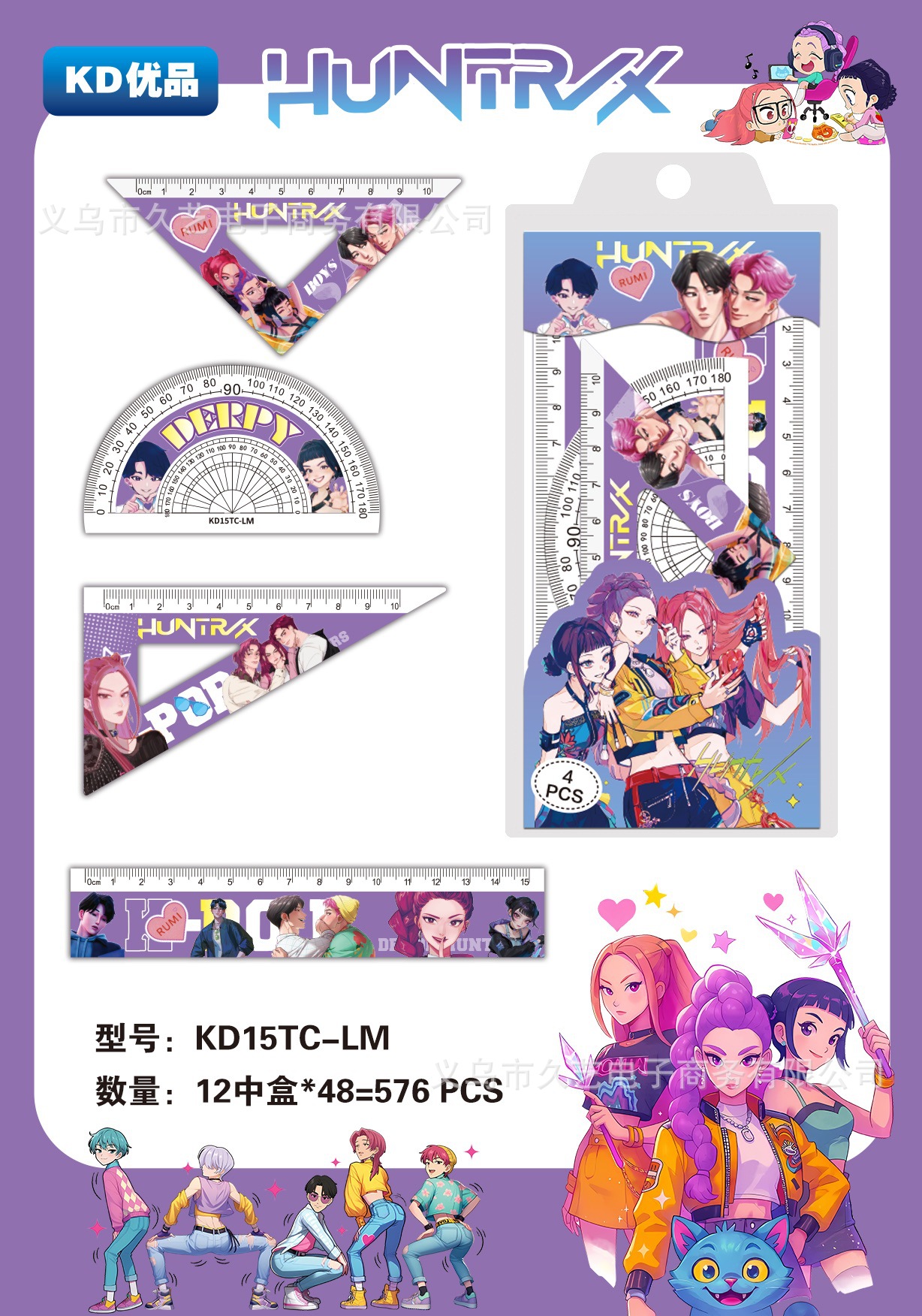 跨境新品KPOP猎魔女团套尺高颜值小学生直尺刻度尺卡通文具三角尺