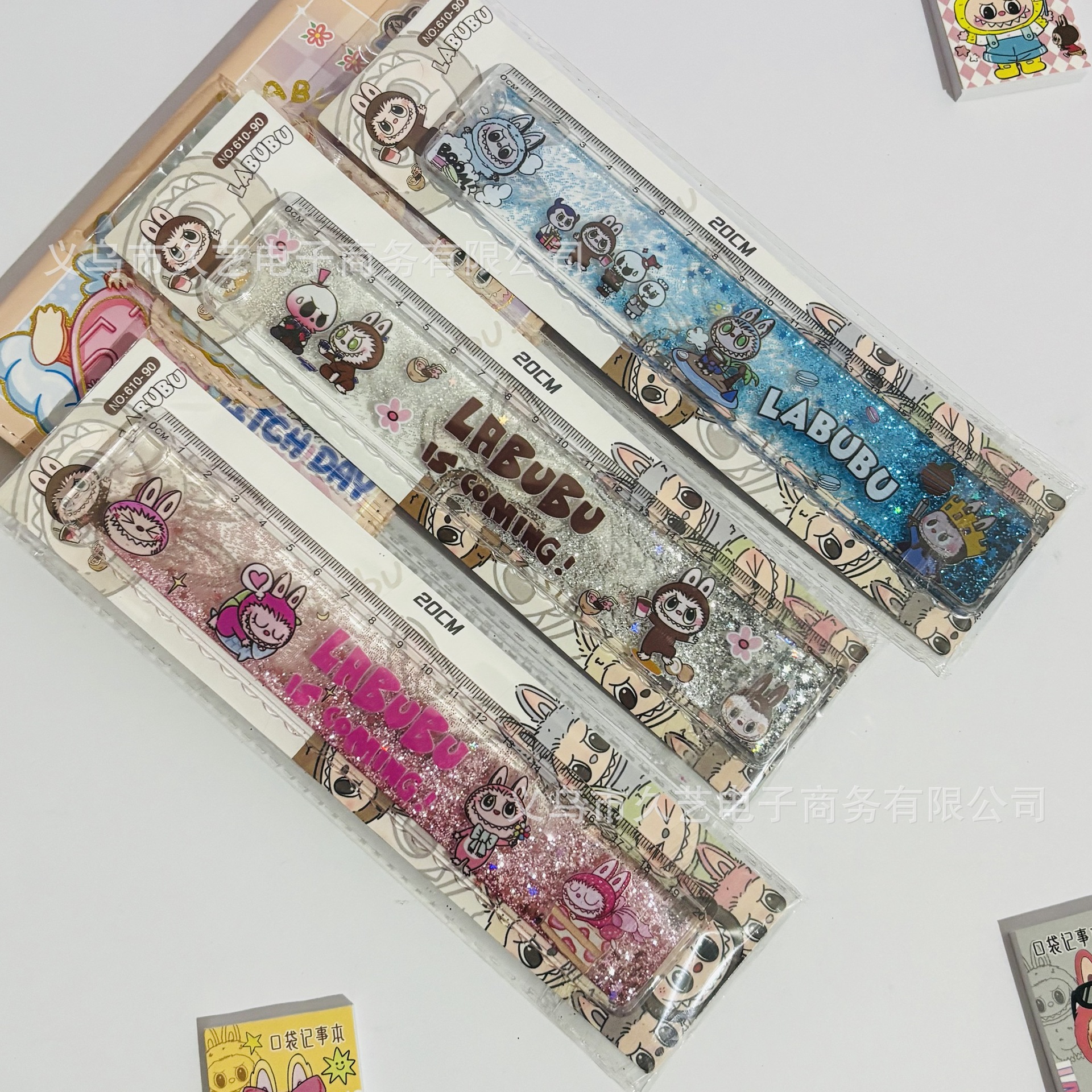 外贸新款萌趣labubu拉布布流沙尺学生卡通20cm减压入油直尺绘画尺