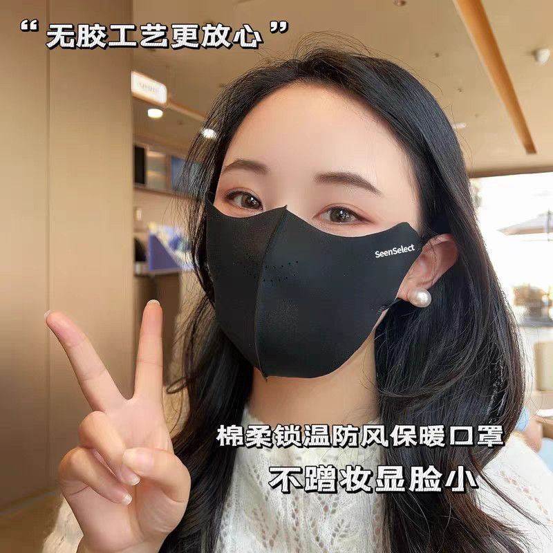 秋冬新款立体无痕保暖口罩女高颜值时尚百搭加厚加绒防寒防风面罩