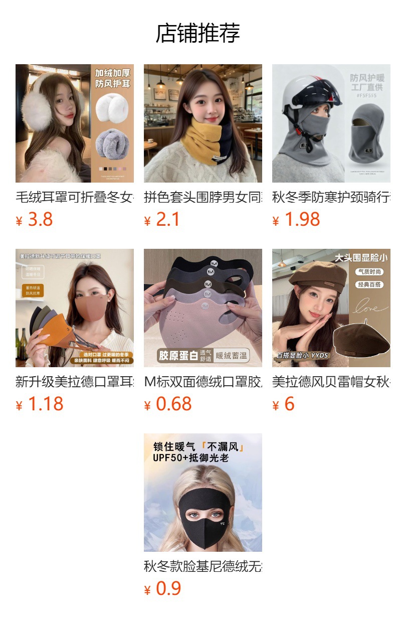 美拉德秋冬保暖口罩骑行防风御寒无痕显瘦修饰小脸型可水洗护眼角