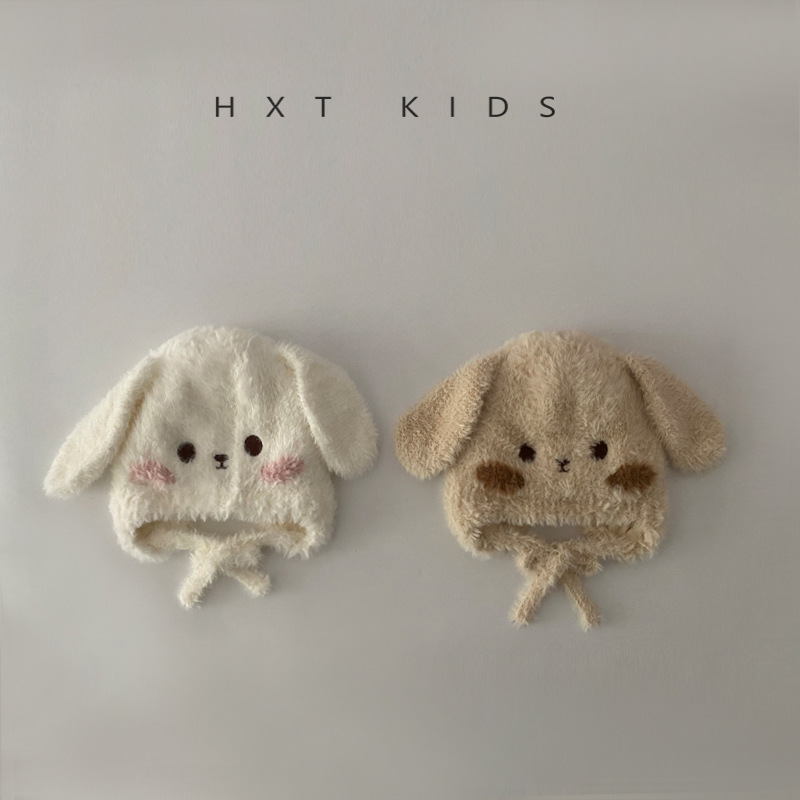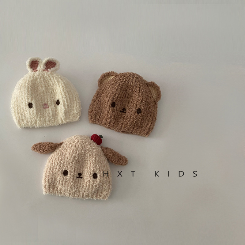 婴儿毛绒帽秋冬季超萌可爱小熊套头帽子小月龄宝宝小兔子保暖帽冬