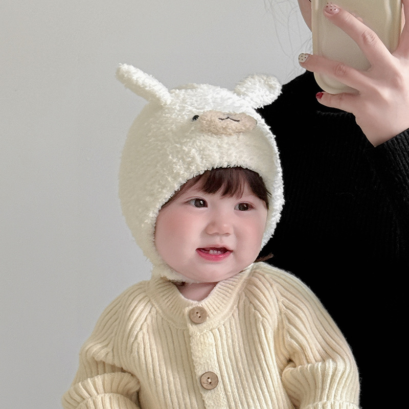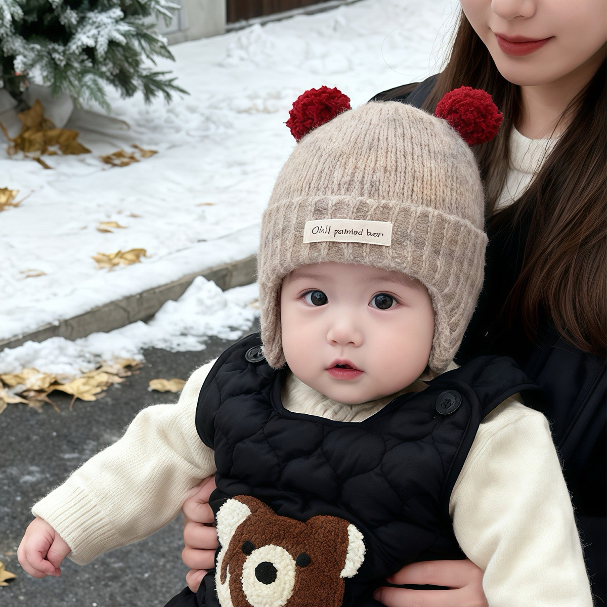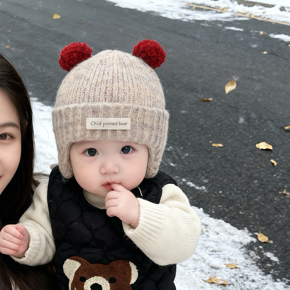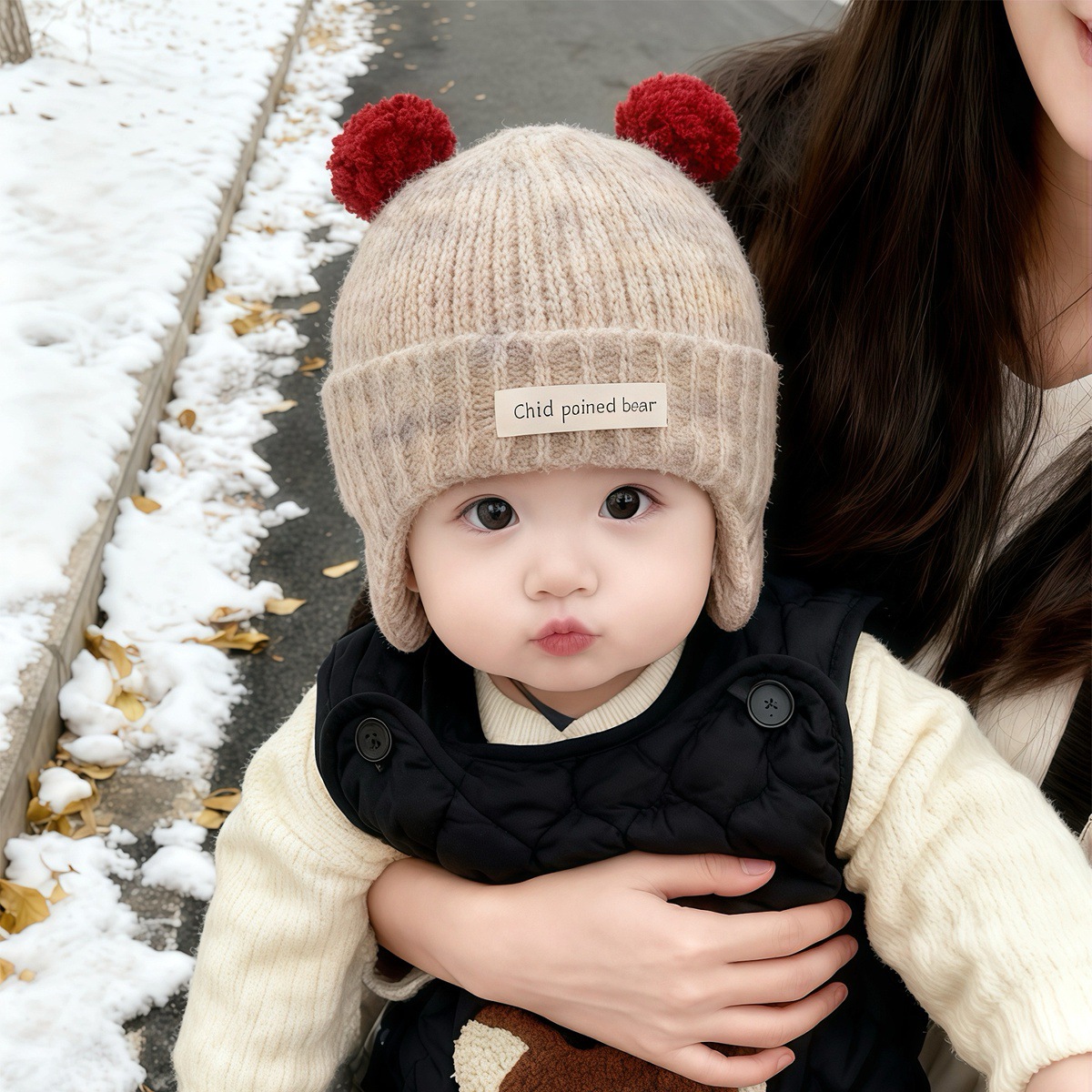 婴儿帽子秋冬毛绒帽可爱韩版针织护耳帽男女宝宝加厚保暖防风帽冬