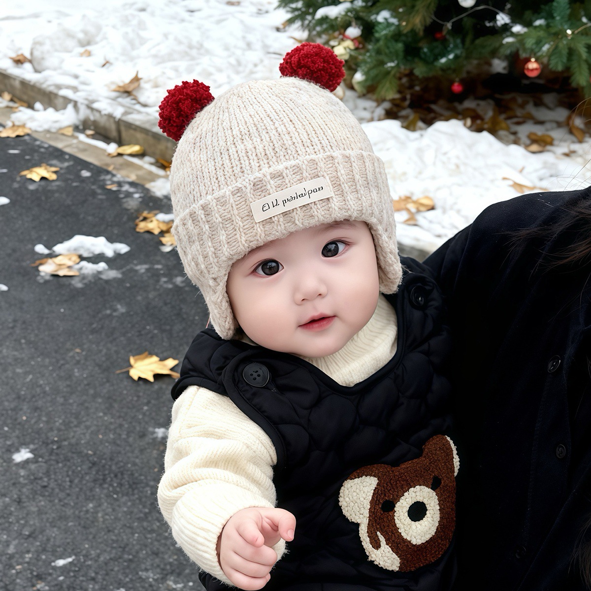 婴儿帽子冬天毛线帽男女宝宝小月龄加厚保暖针织护耳帽防风帽可爱