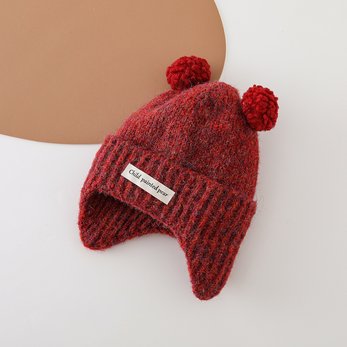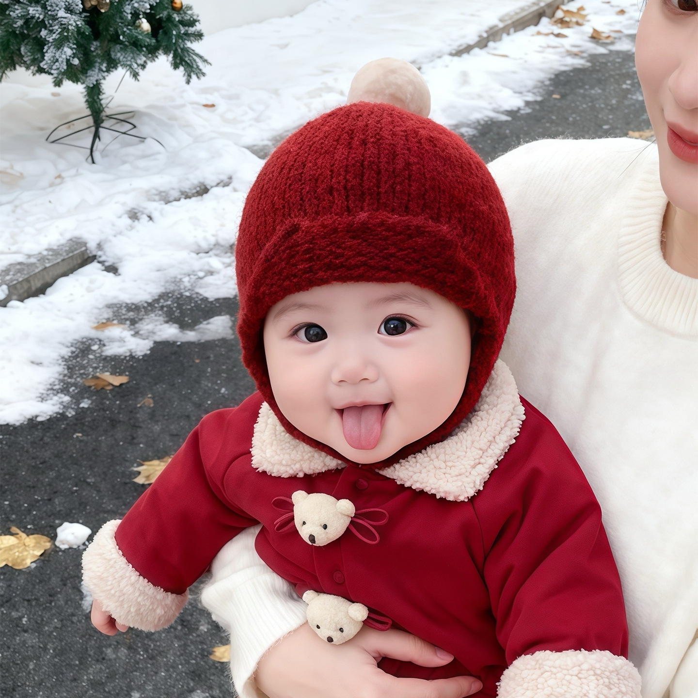新年を過ぎる赤い赤ちゃんの精霊帽秋冬の乳幼児と子供のニットの保温耳の厚い毛糸の帽子