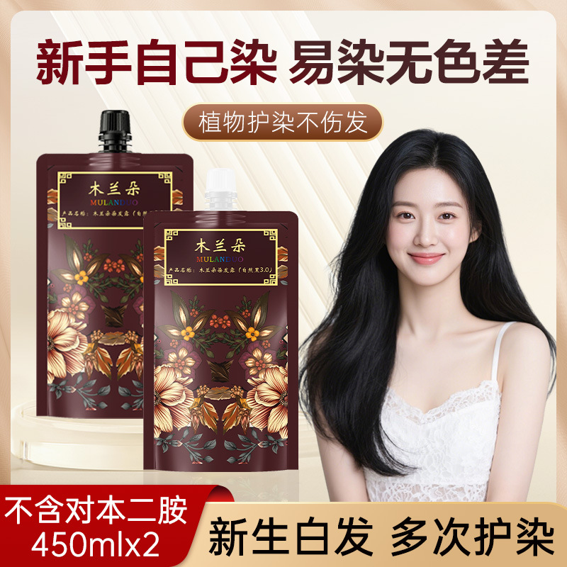 丝羽秀含植物染发剂自己在家一梳彩染发膏盖白发源头批发厂家