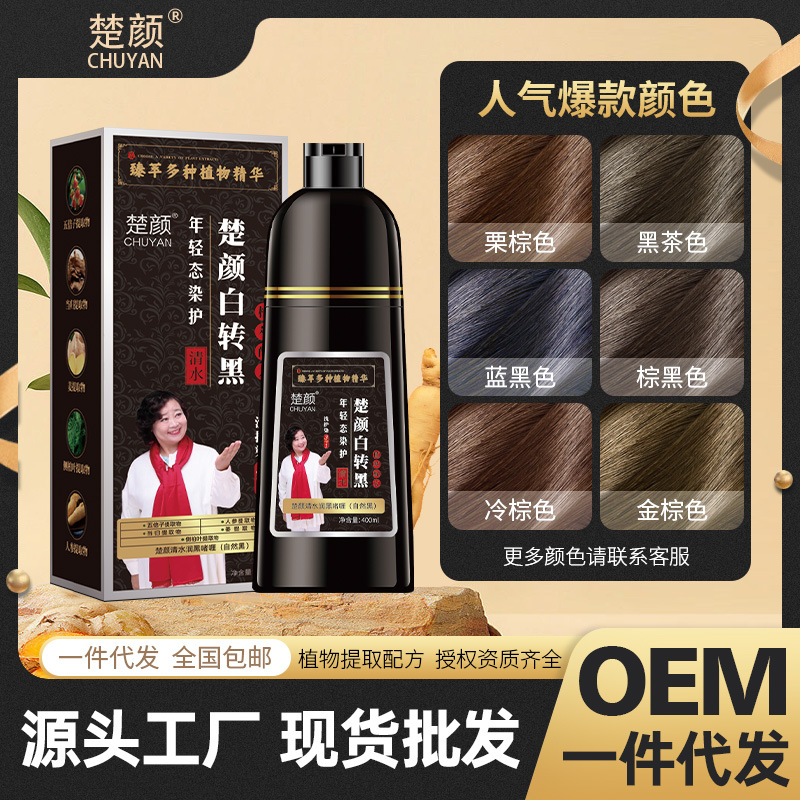 楚燕黒髪染めは植物エキス配合の染毛クリームで、黒茶色の色を保護し、髪に栄養を与えます。