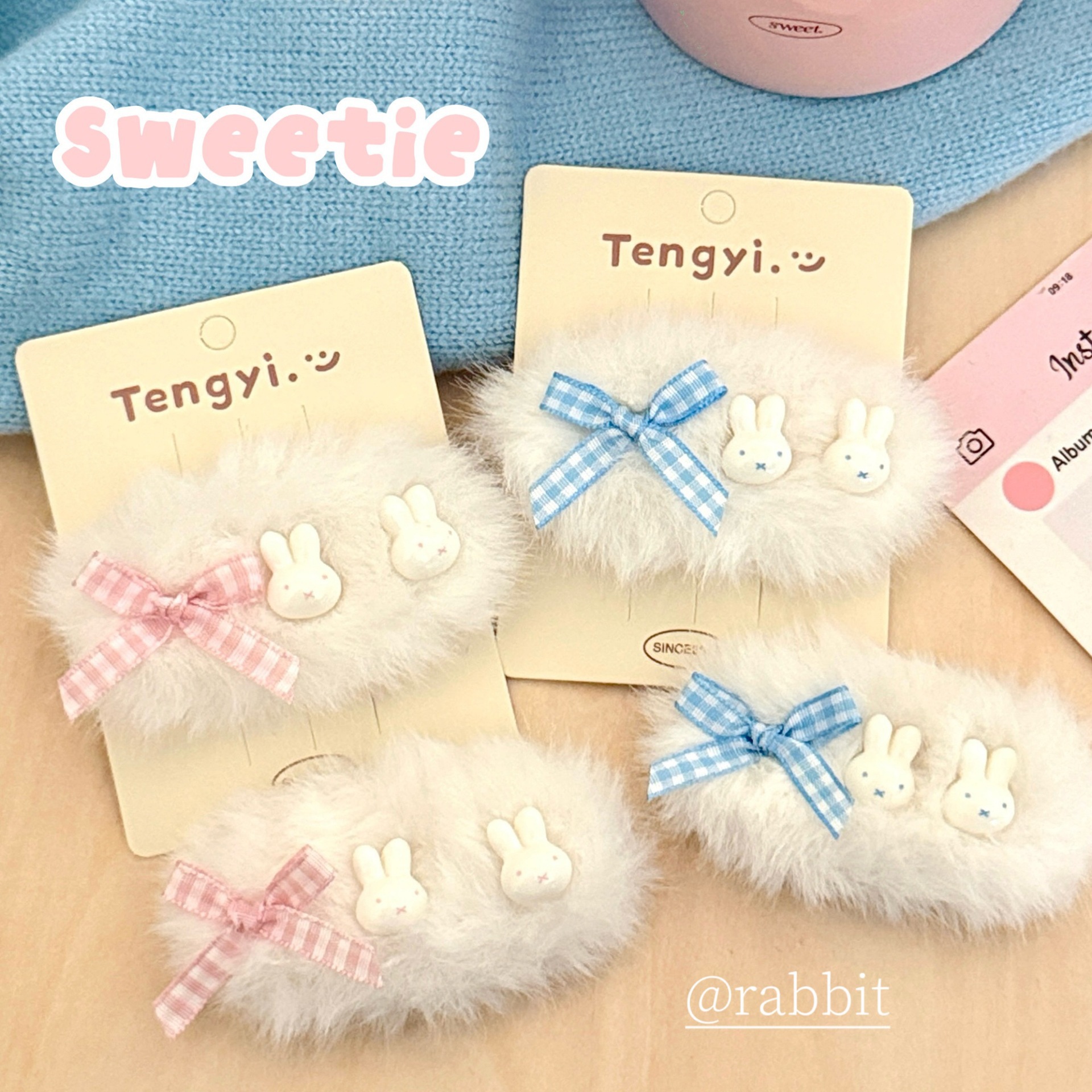 奶蓝色格纹小兔发夹少女甜美刘海夹边夹儿童碎发夹可爱鸭嘴夹发饰