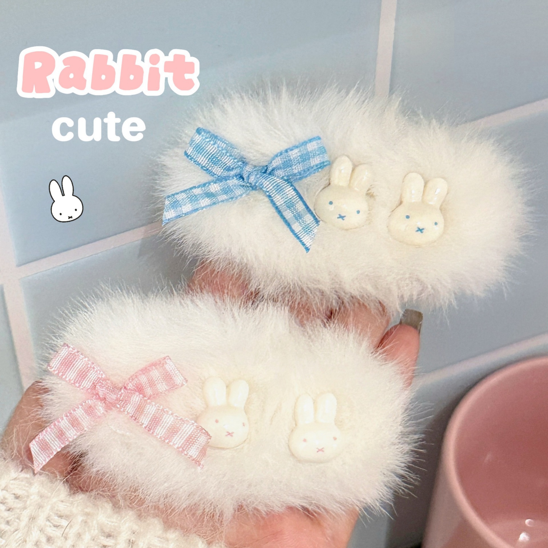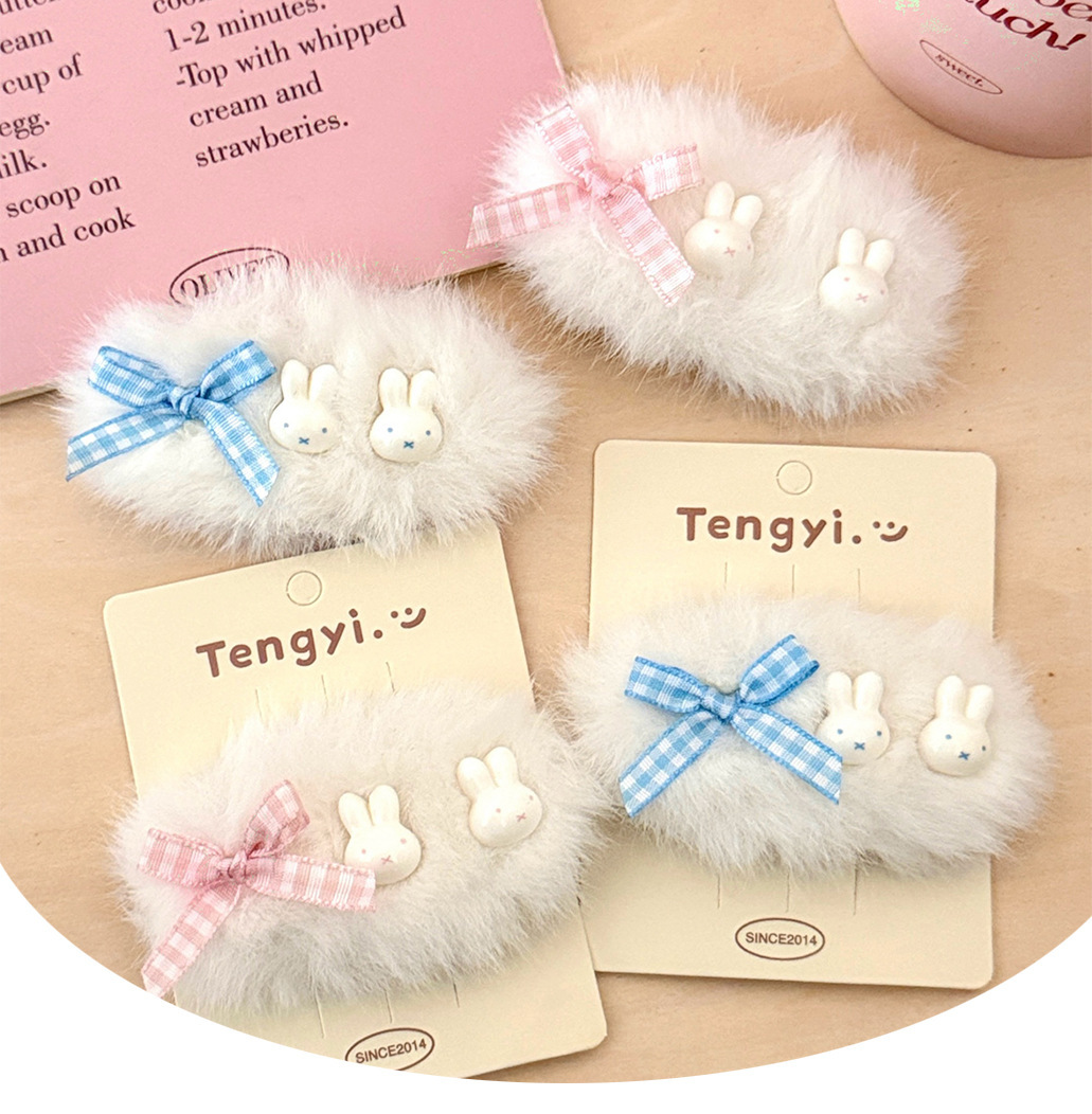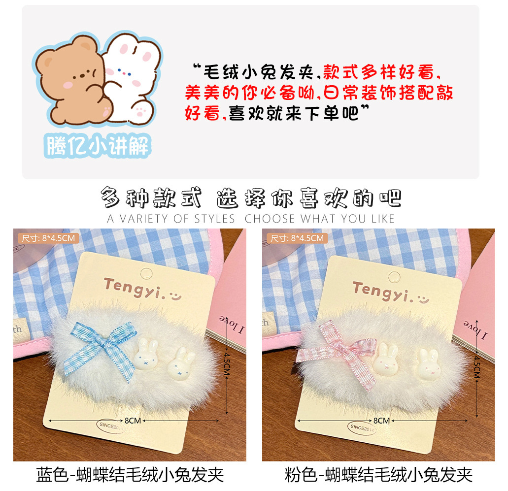 新款秋冬氛围感蝴蝶结毛绒小兔发夹发饰甜美少女心碎发刘海夹BB夹