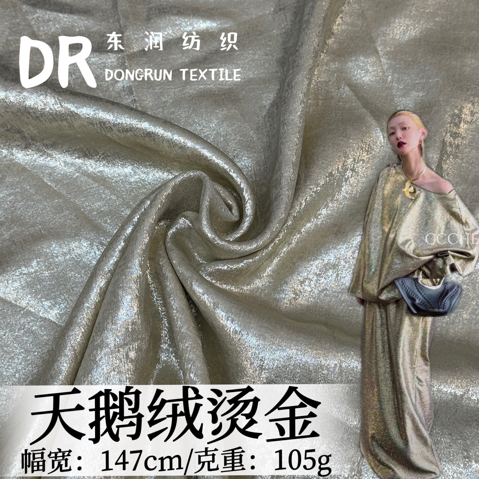 天鹅绒烫金布料 烫金银光满版面料 金属质感上衣长袍欧美布料