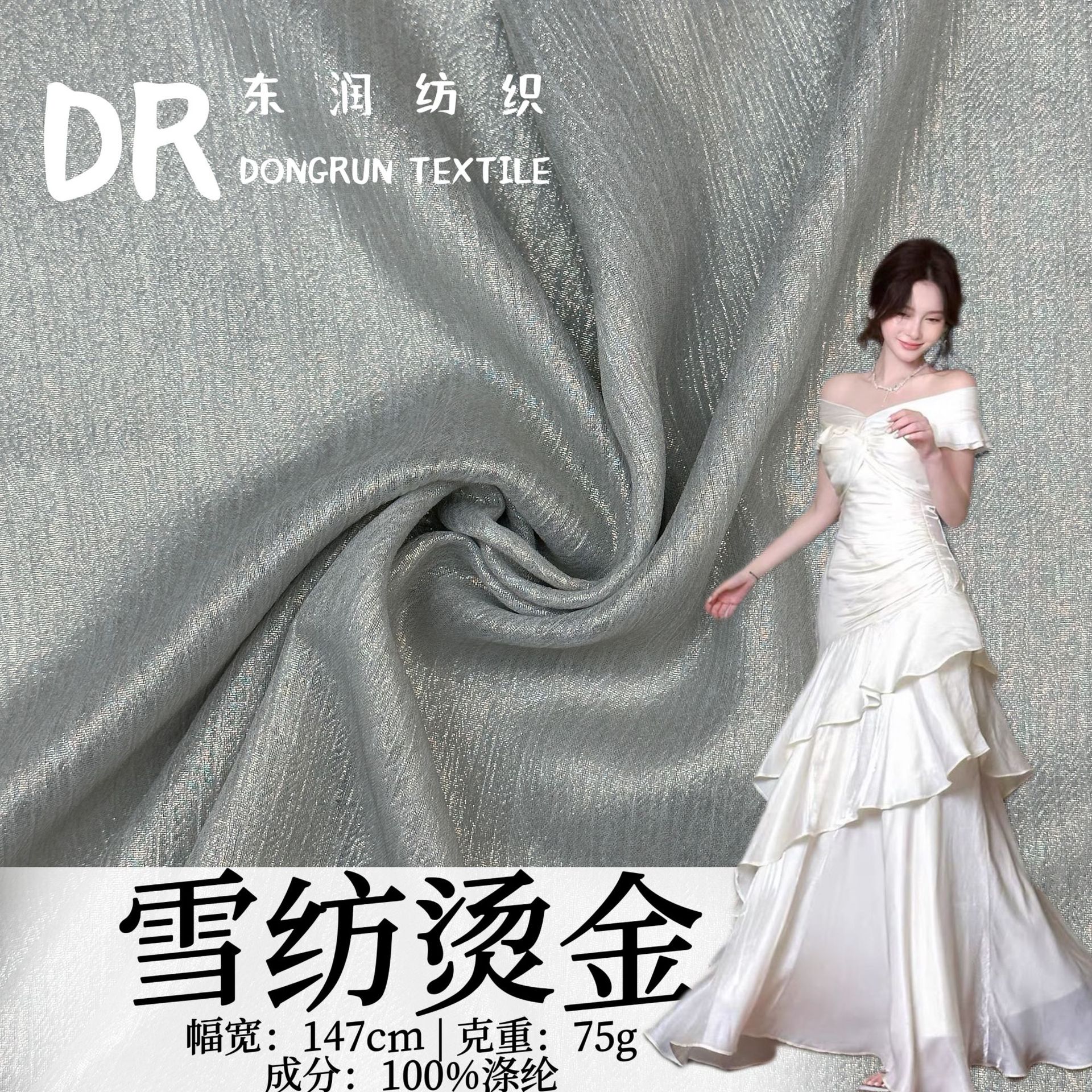 雪纺烫金 烫金银光满版带皱感面料 金属质感上衣长袍欧美布