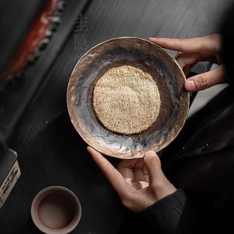 老岩泥手工鎏金粗陶壶承茶盘家用复古茶壶托盘茶托隔热杯垫