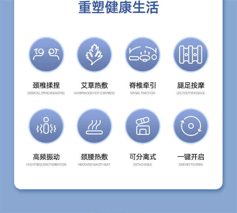 规格 【入门款】不可拆卸-无枕头,【经典款】颈部气囊揉捏,【两件绒】揉捏按摩枕-热敷按摩,【旗舰款】腰部+气囊举顶拉伸,【顶配皮】气囊+可拆卸使用-药包,【顶配绒】气囊+可拆卸使用-药包,【钻石皮】腰部气囊+全配置按摩-30头,【钻石绒】腰部气囊+全配置按摩-30头,豪华皮质款五合一可拆卸(药枕+颈部滚轮+震动加热+腿部加热揉捏),豪华绒布压型款五合一可拆卸(药枕+颈部滚轮+震动加热+腿部加热揉捏),至尊皮质款五合一腰部牵引款(药枕+颈部滚轮+震动加热+腿部揉捏+腰部牵引)