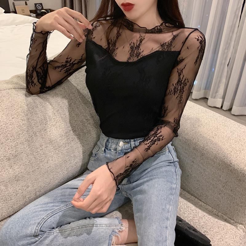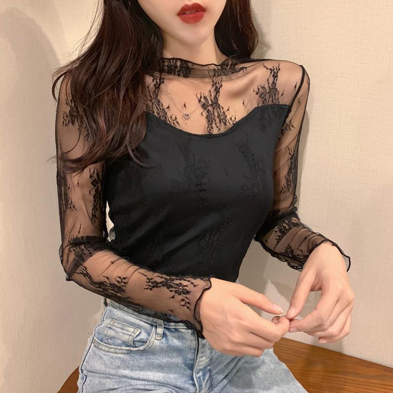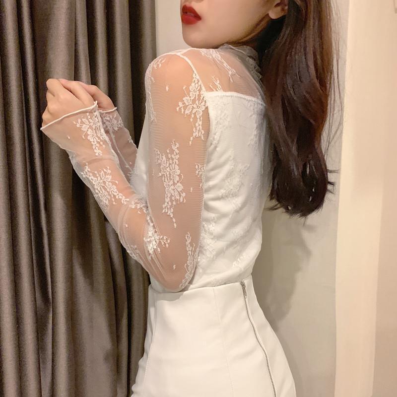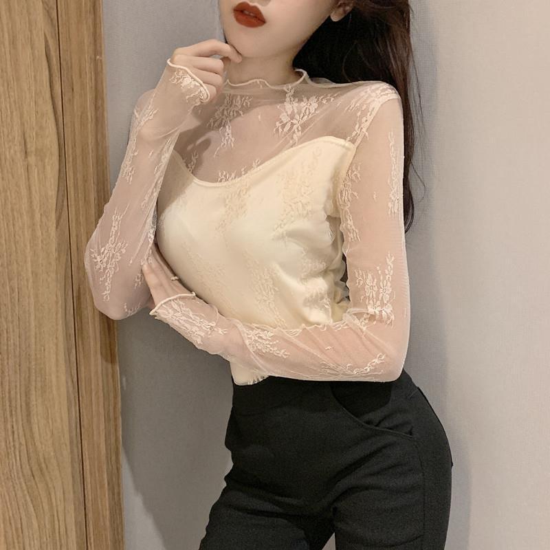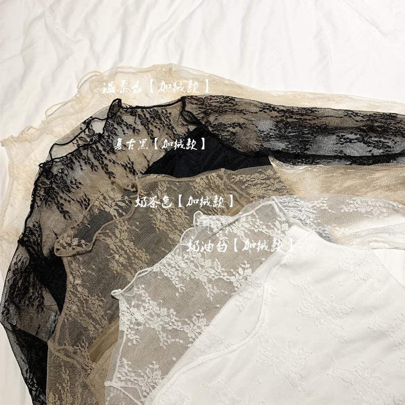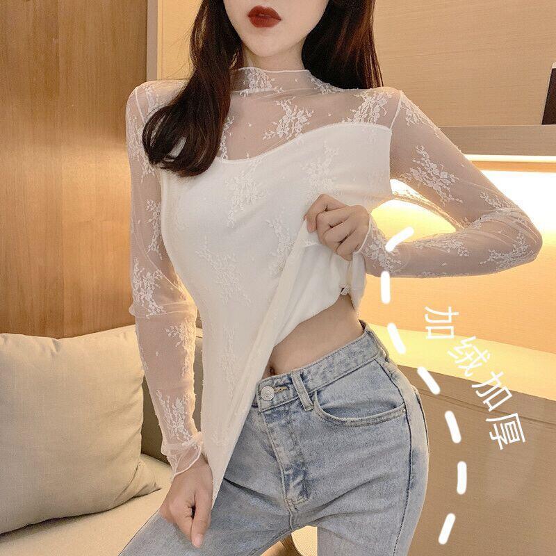 2025秋冬新款加绒蕾丝衫女长袖高领修身显瘦内搭打底衫洋气上衣
