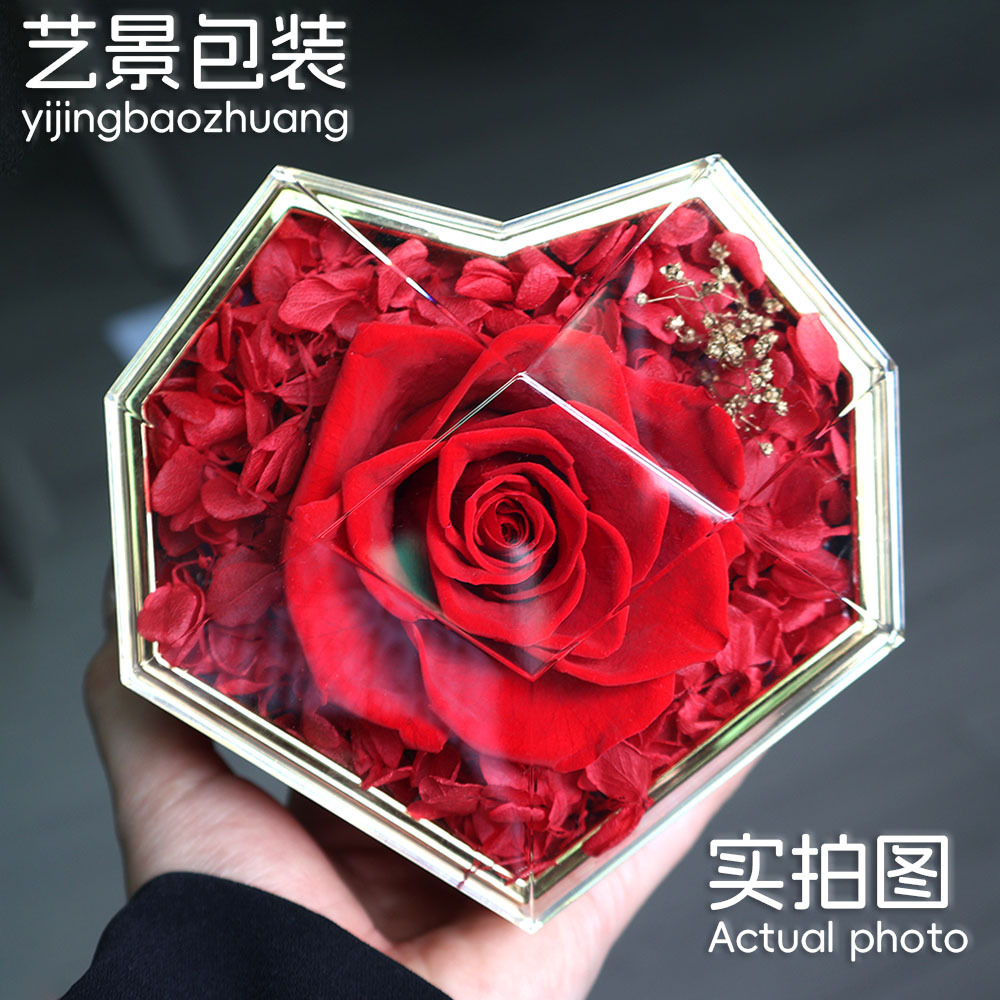 九輪の花のアクセサリーの箱のバレンタインデーのアクリルの贈り物の包装箱の永遠の命の花の贈り物の箱の指輪の箱の現物は卸売りします。