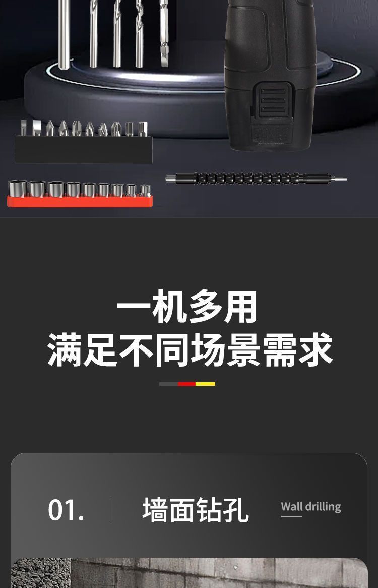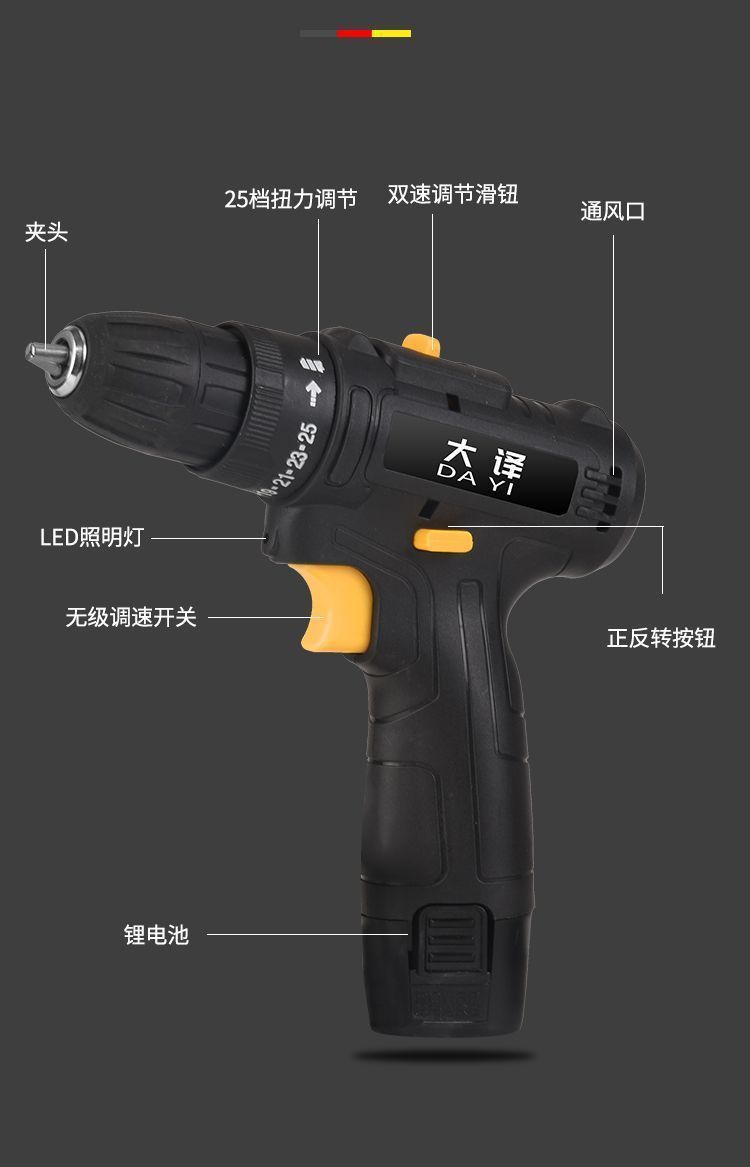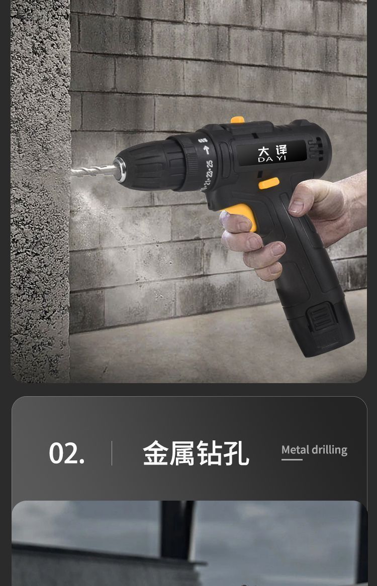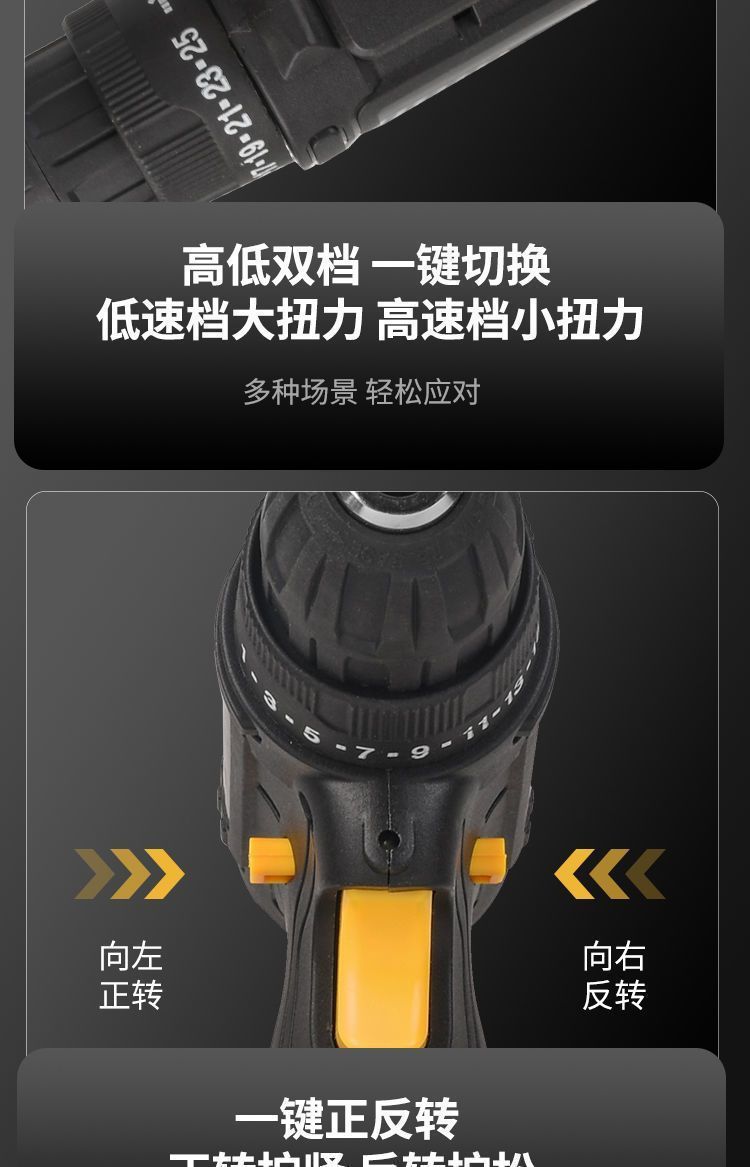 手电钻转家用电钻充电式工具锂电多功能冲击手枪钻电动螺丝刀外贸