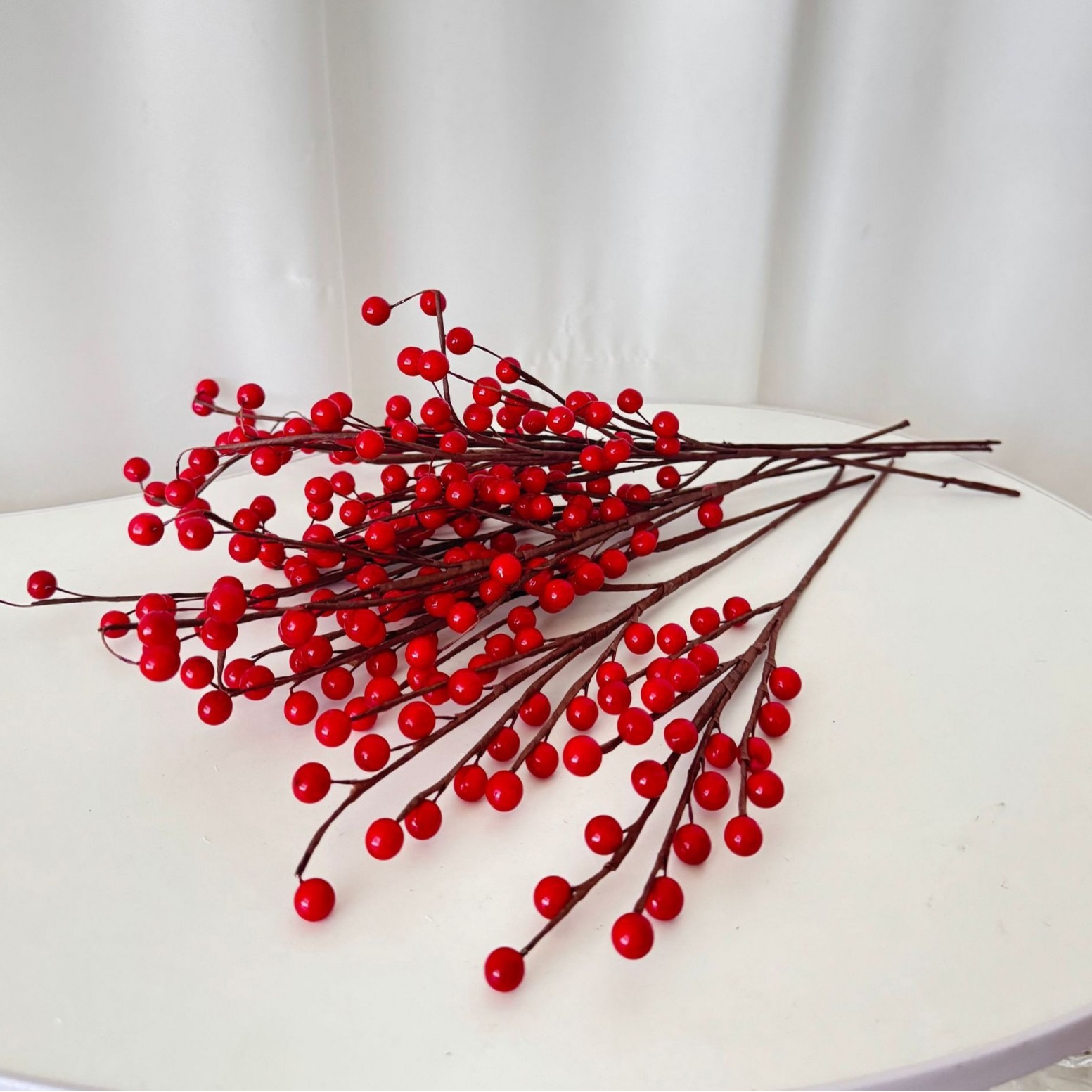 红果仿真批发浆果婚礼室内装饰圣诞小红果发财果相思豆冬青果仿真