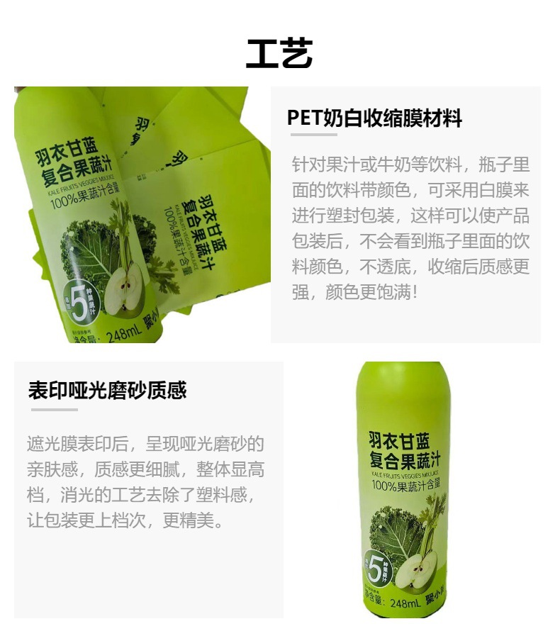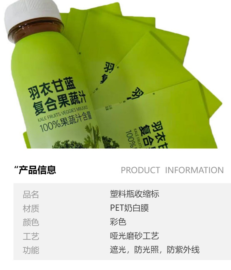 深圳厂家直供饮料收缩标签pet白膜彩印热缩膜质感强不透色高档