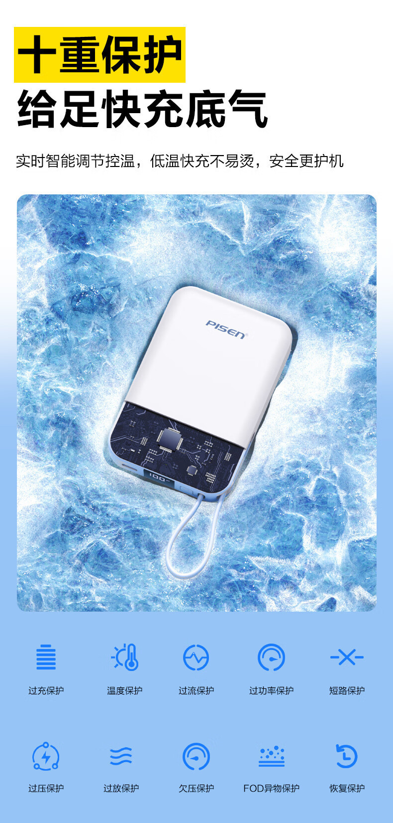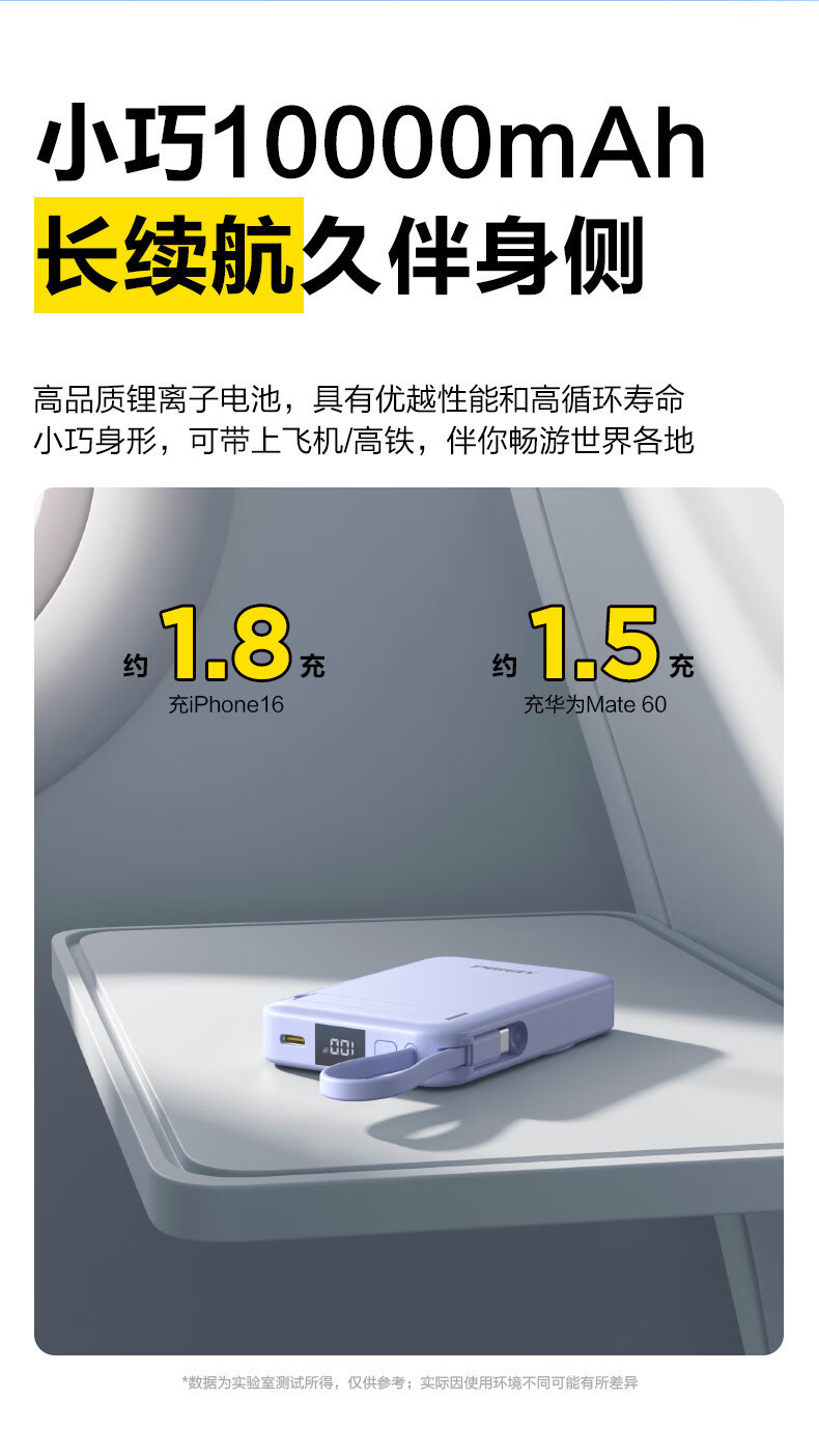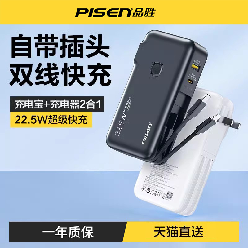 品勝充電宝10000ミリアンペア22.5W速充自帯線電覇小型プラグ付き移動電源卸売り