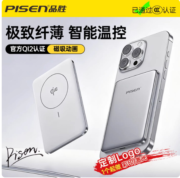 品胜QI2.0金属磁吸充电宝20W无线快充5000毫安适用苹果12-17系列