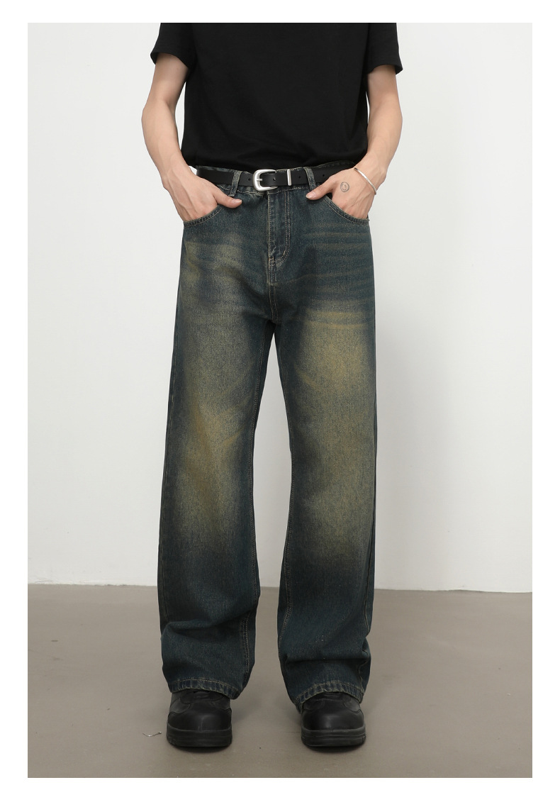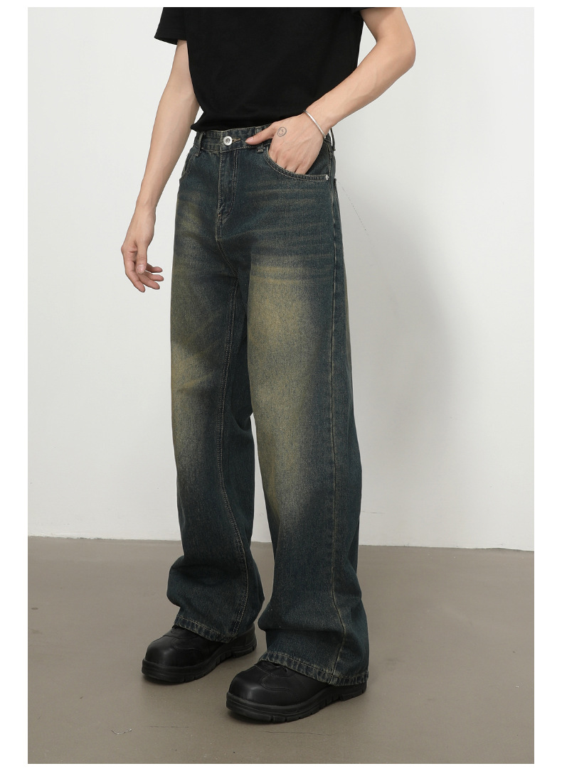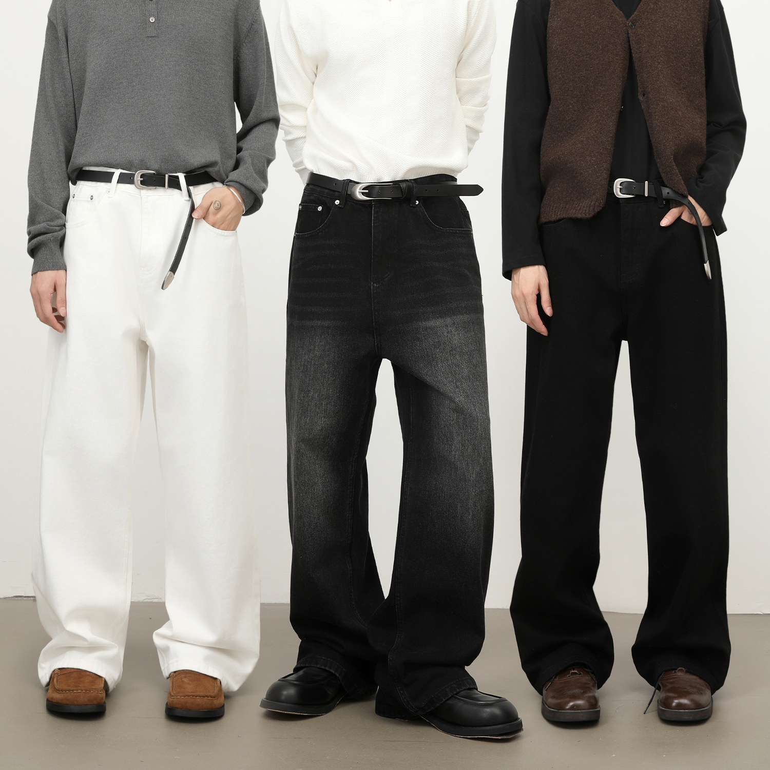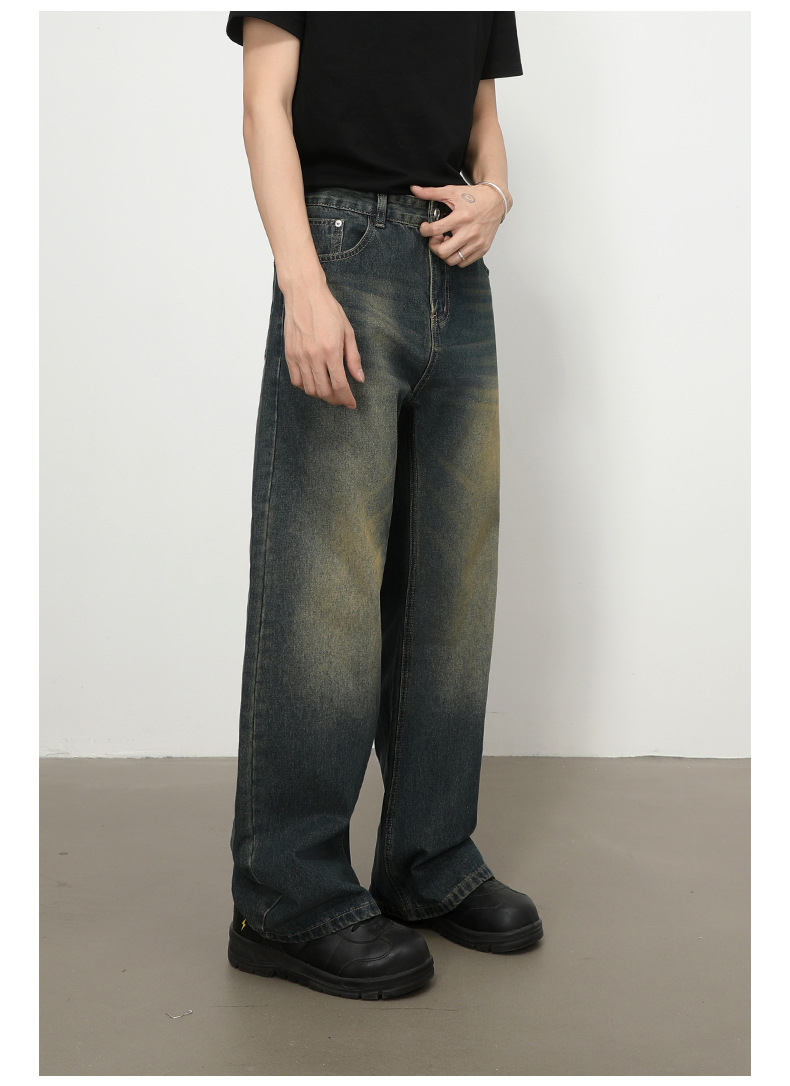 nirben牛仔|直筒牛仔裤男韩版百搭阔腿裤宽松显瘦百搭拖地长裤子