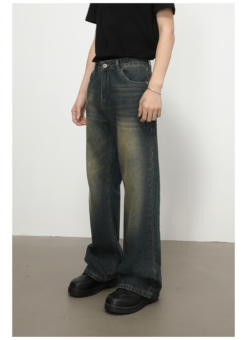 nirben牛仔|韩版新品水洗做旧阔腿直筒牛仔裤宽松显瘦百搭长裤潮