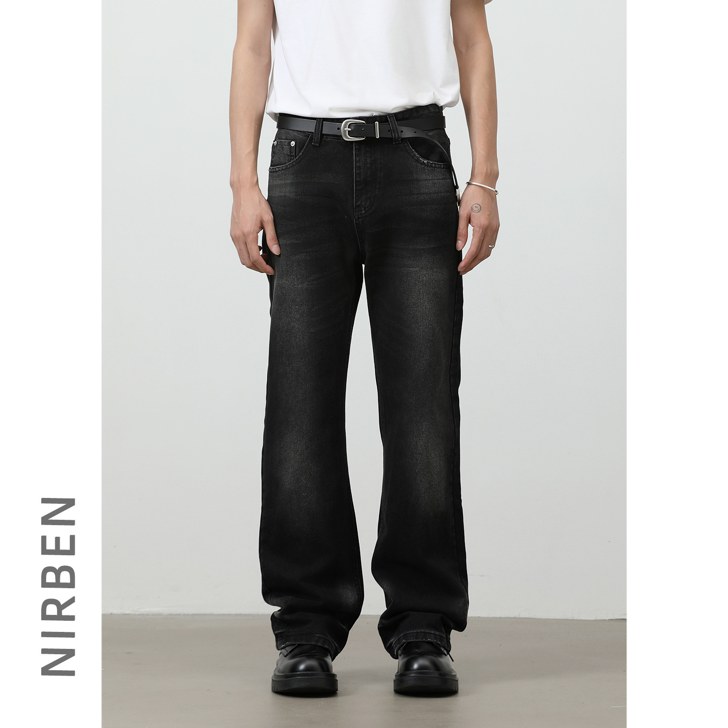 nirben牛仔| 美式cleanfit做旧水洗微喇牛仔裤男宽松潮流百搭长裤