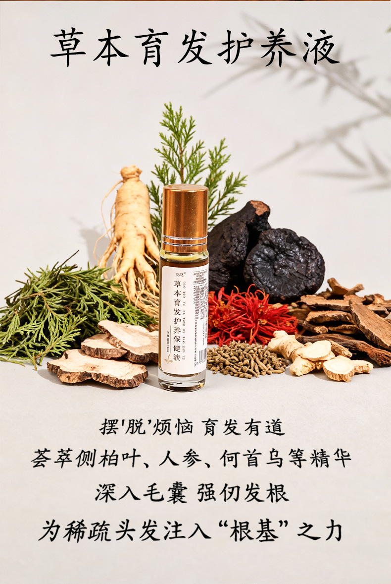 侧柏叶头皮养发液滚珠头发育养护精油植物山羊角发生长草本液