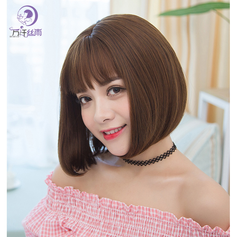 新しい韓国のかつらは前髪の茶色の頭の上のグラデーションの波の頭のboboの短いストレートの自然な日常のwigsです。