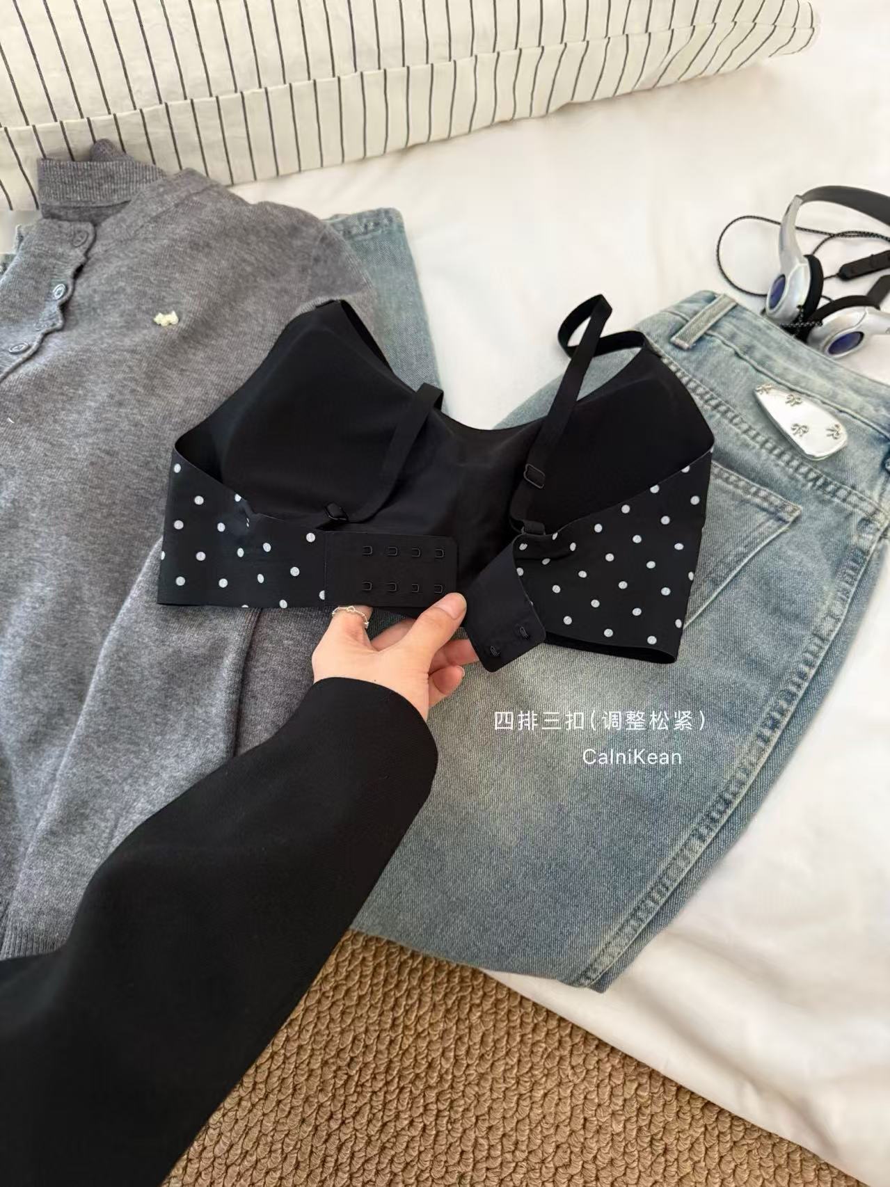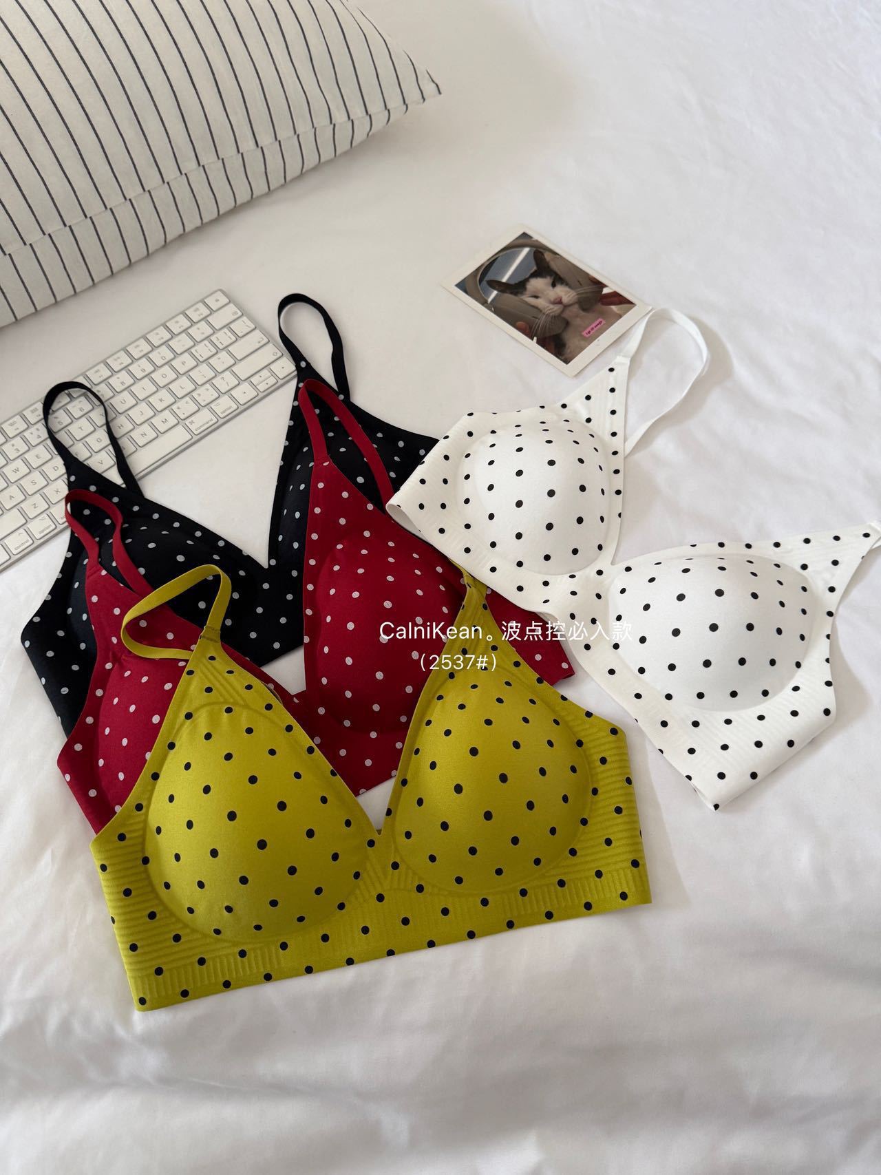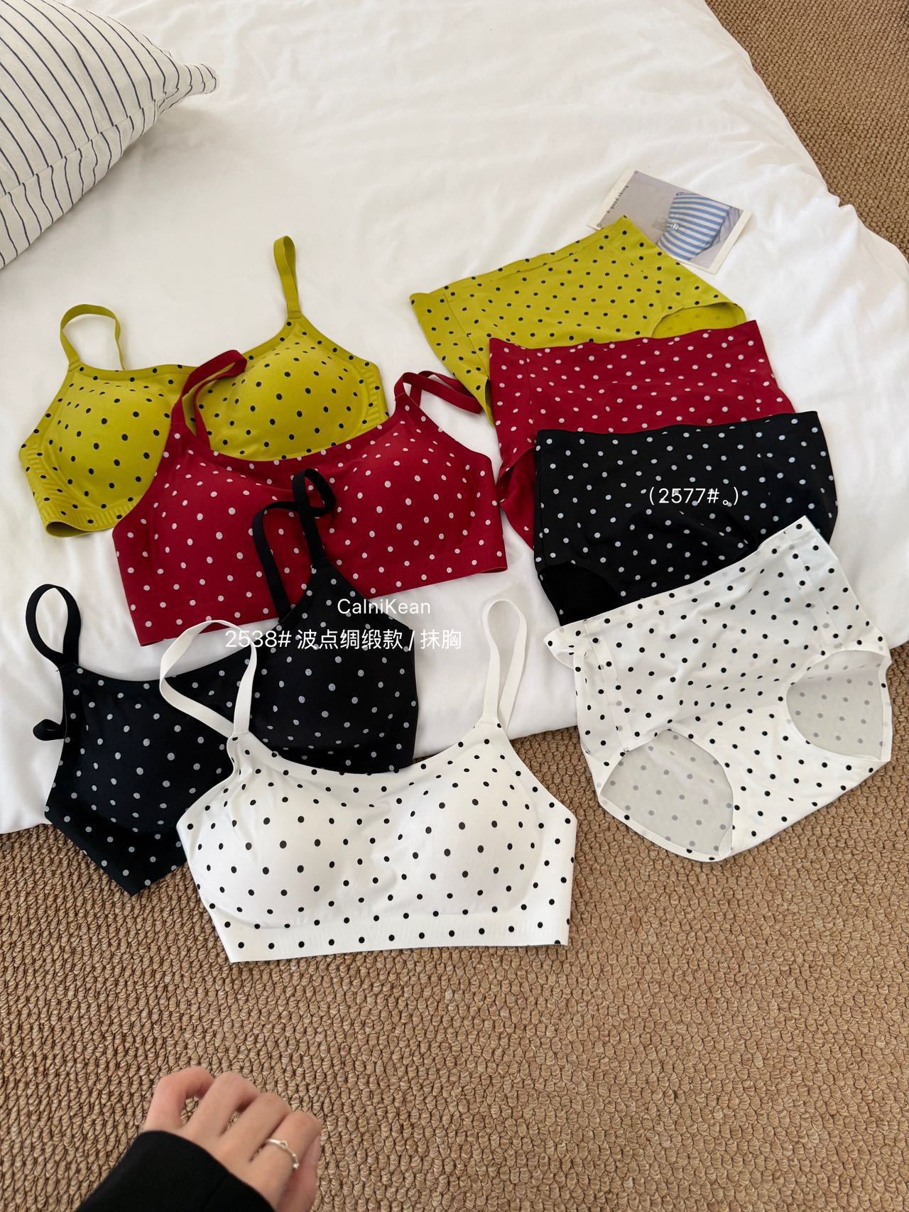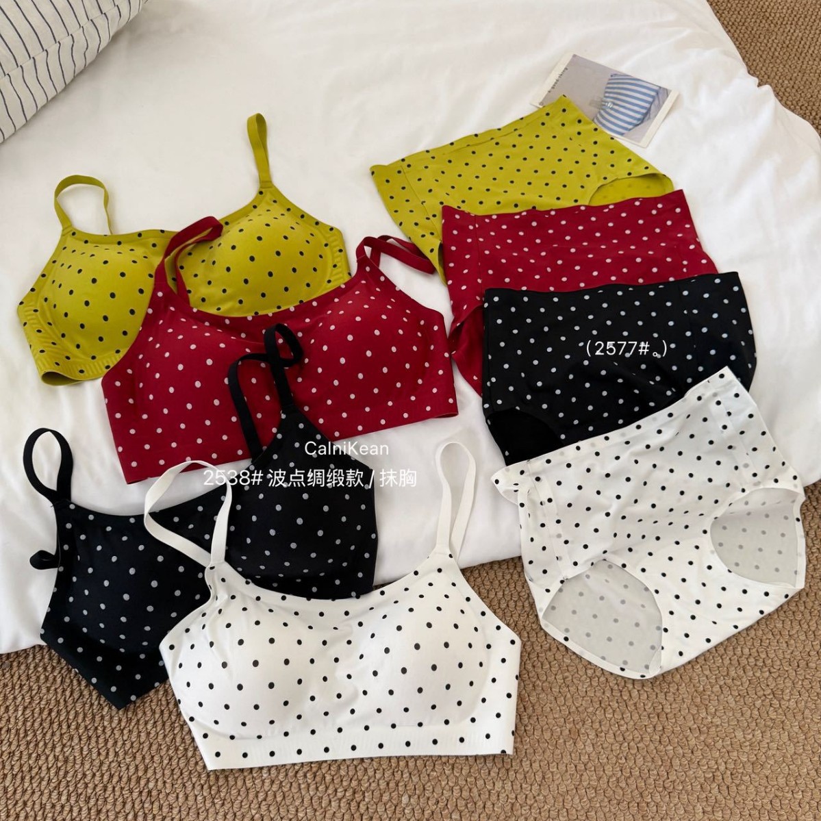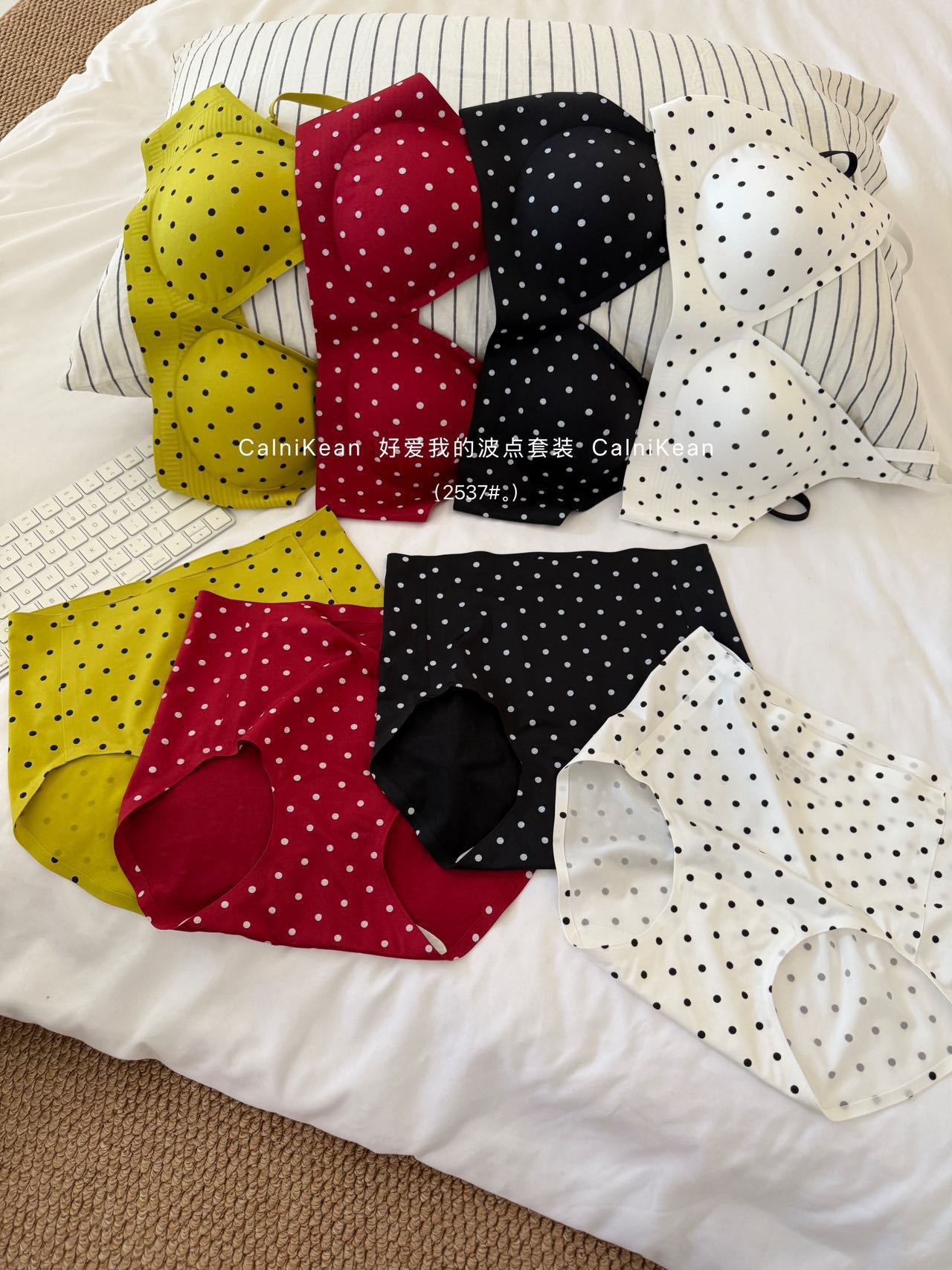 CK&OI 复古波点内衣套装珠光缎面高级轻柔无痕舒适女士文胸
