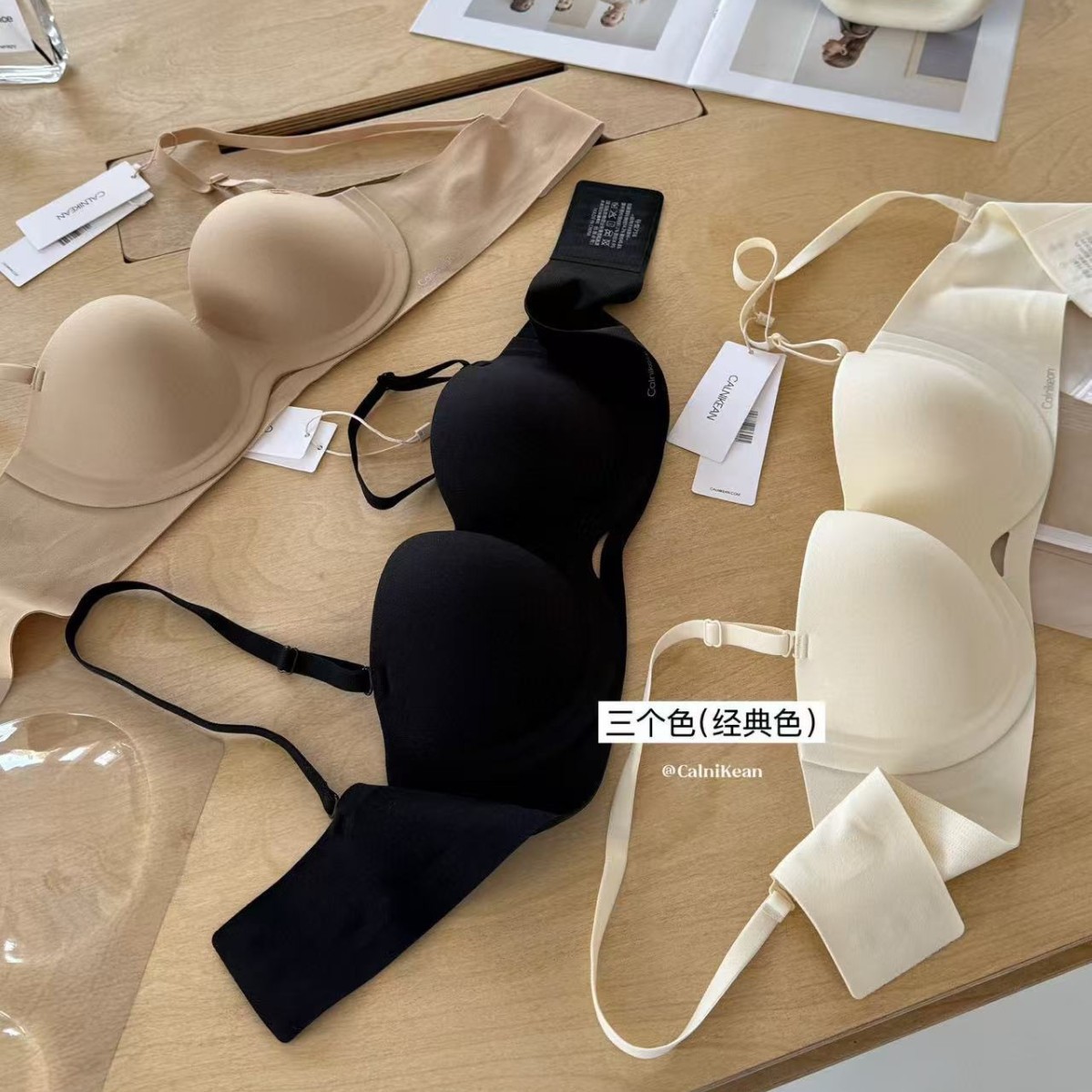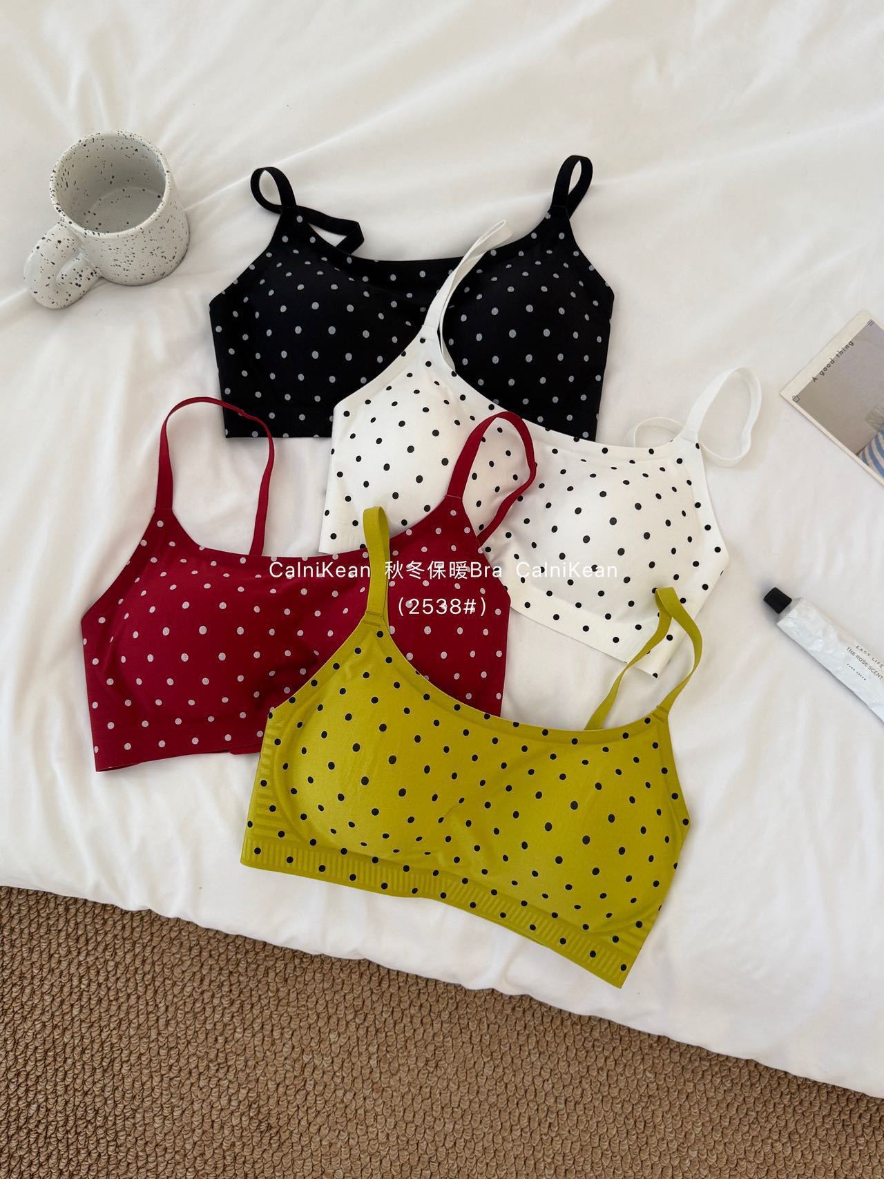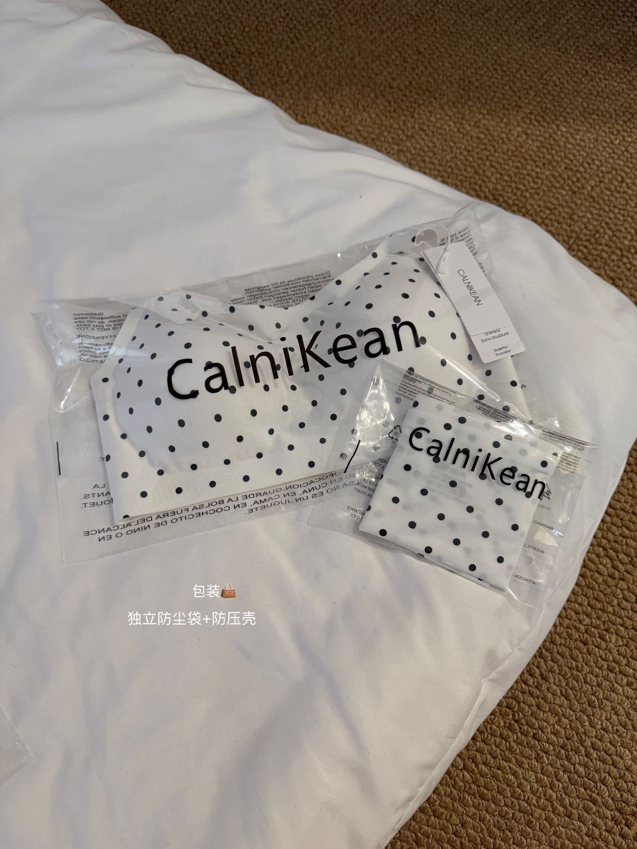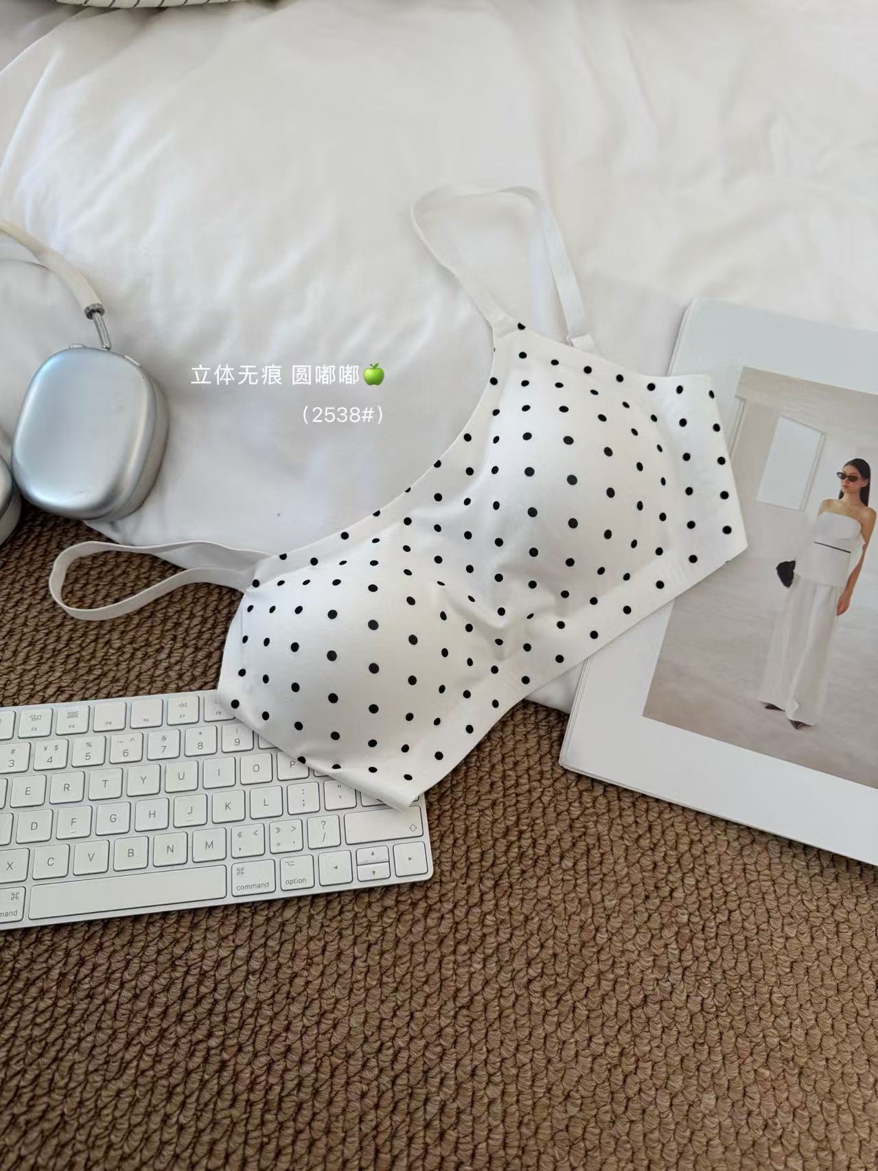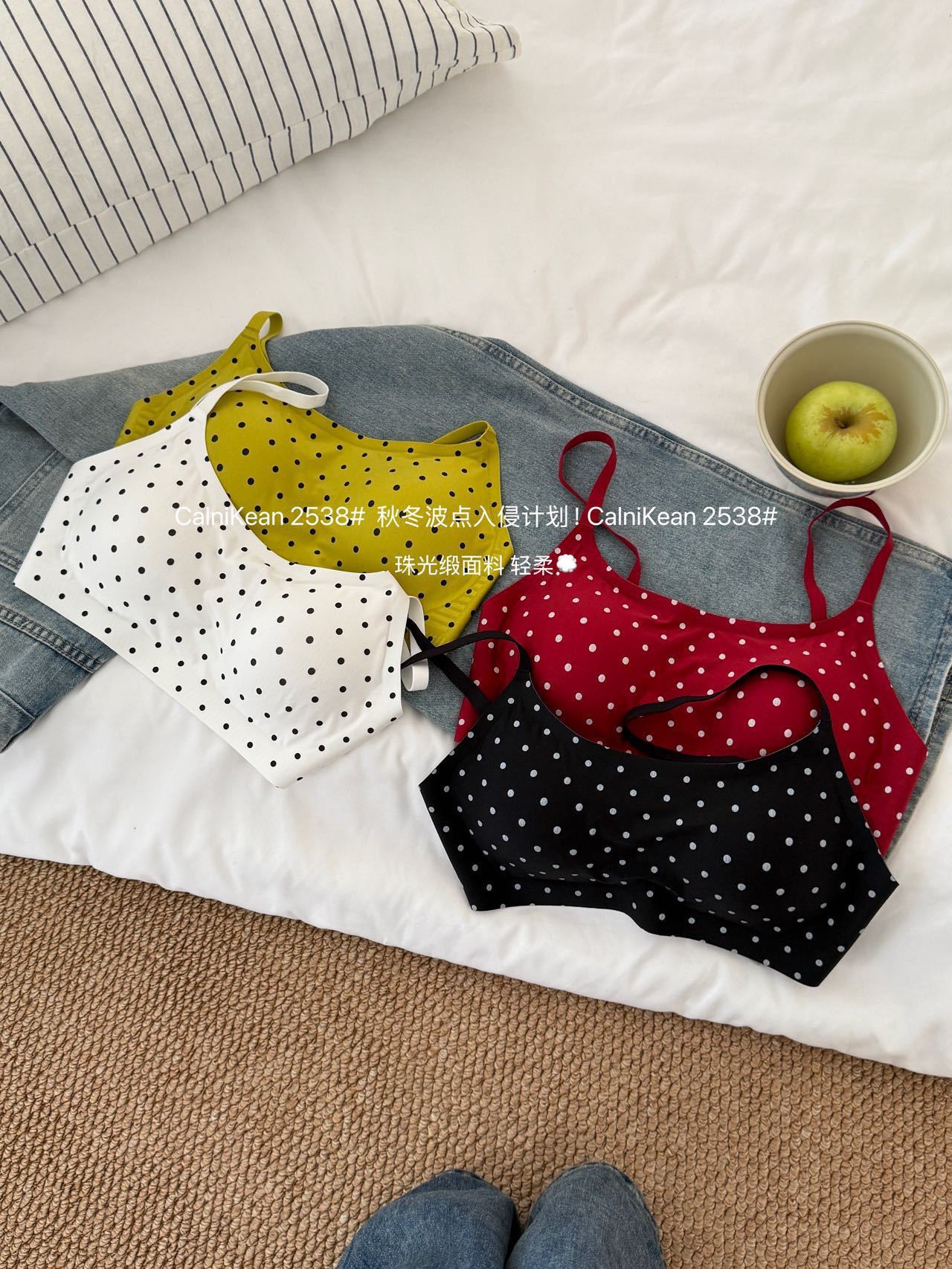 CK&OI 复古波点内衣套装珠光缎面高级轻柔无痕舒适女士文胸