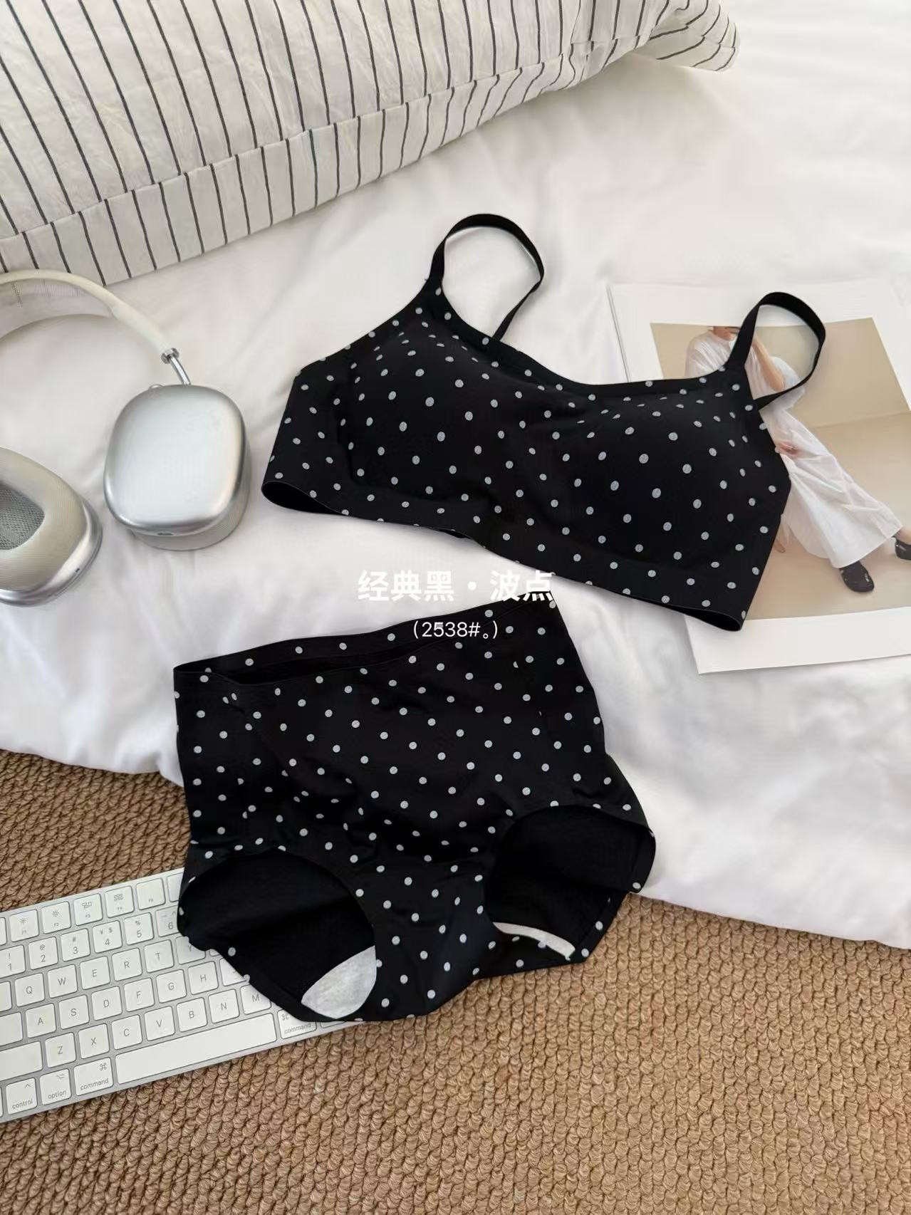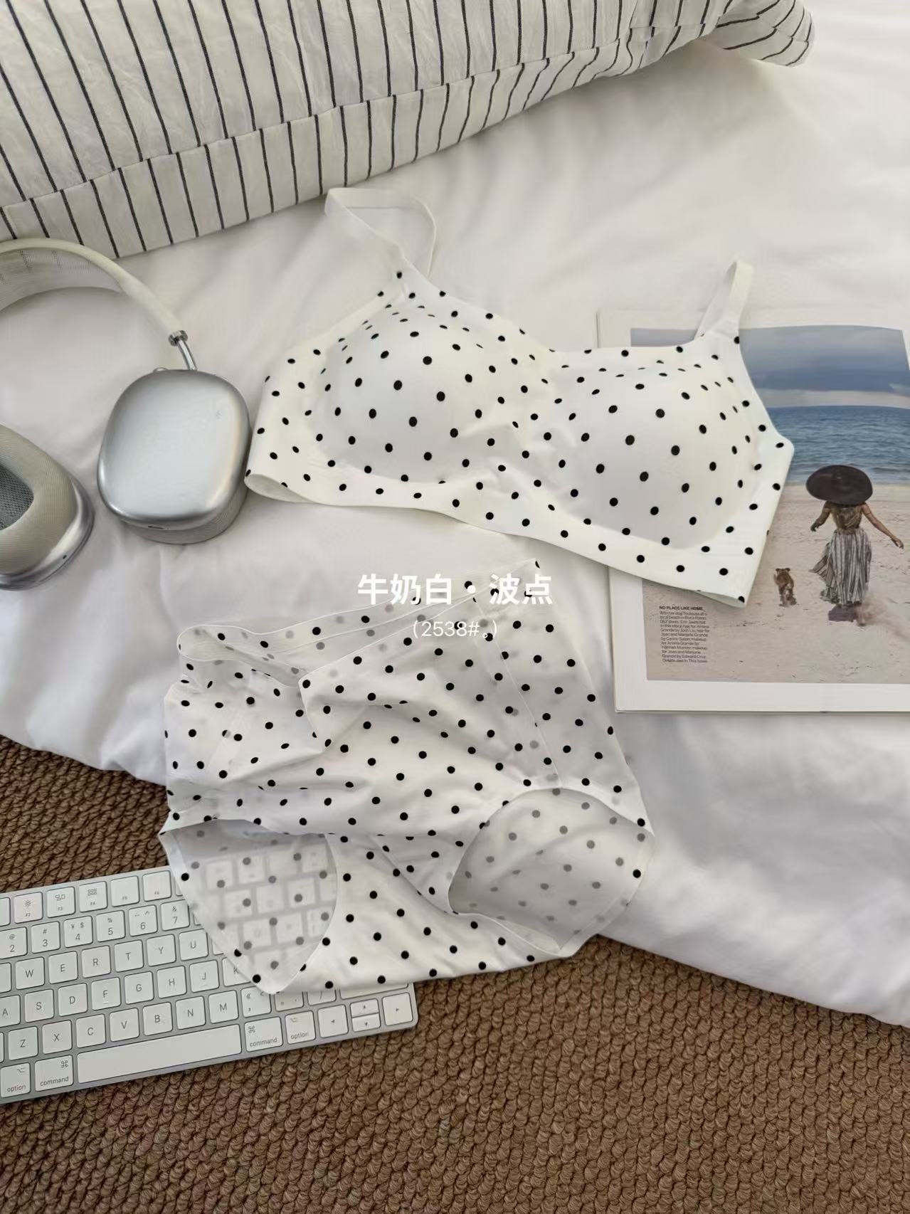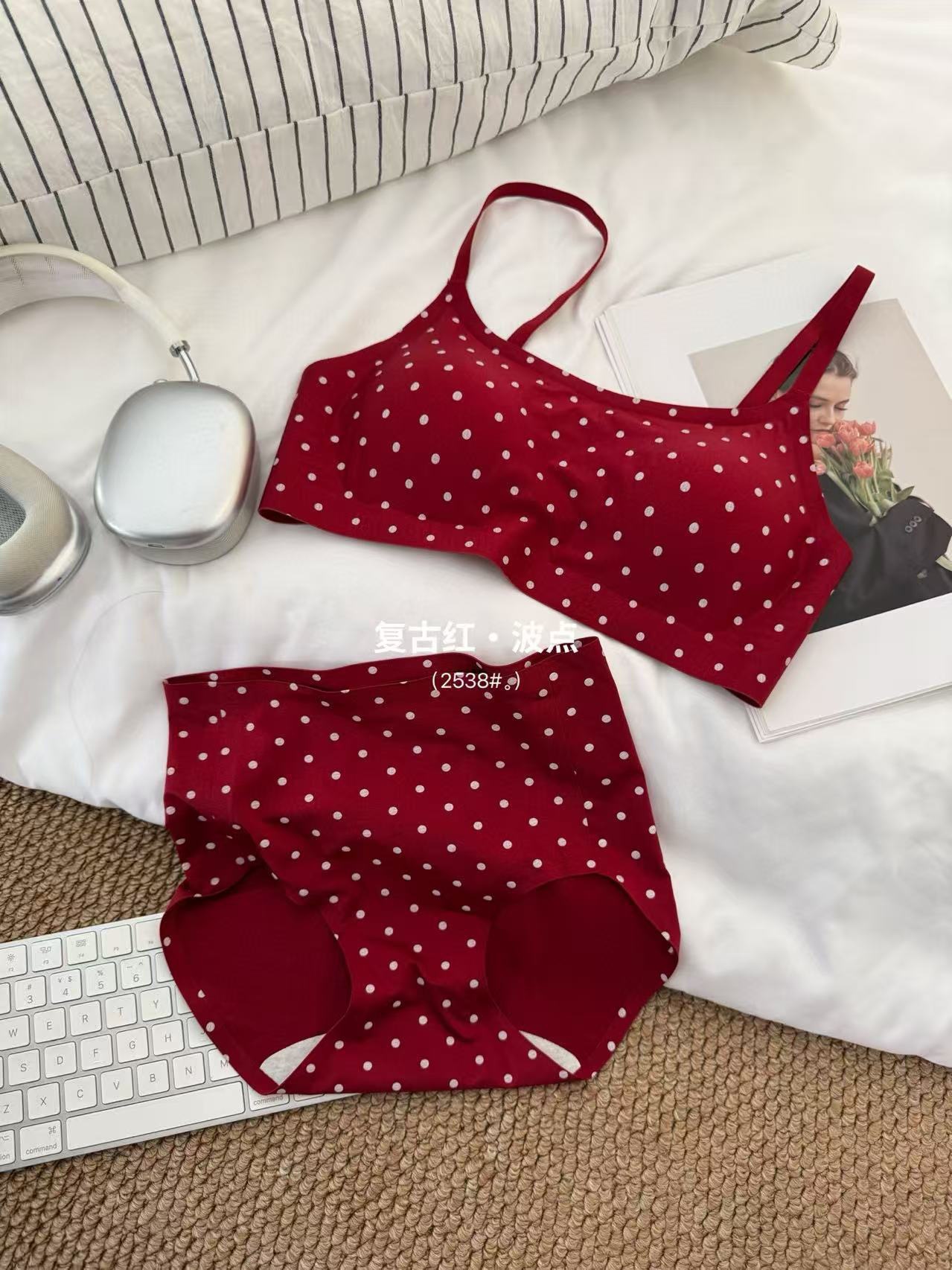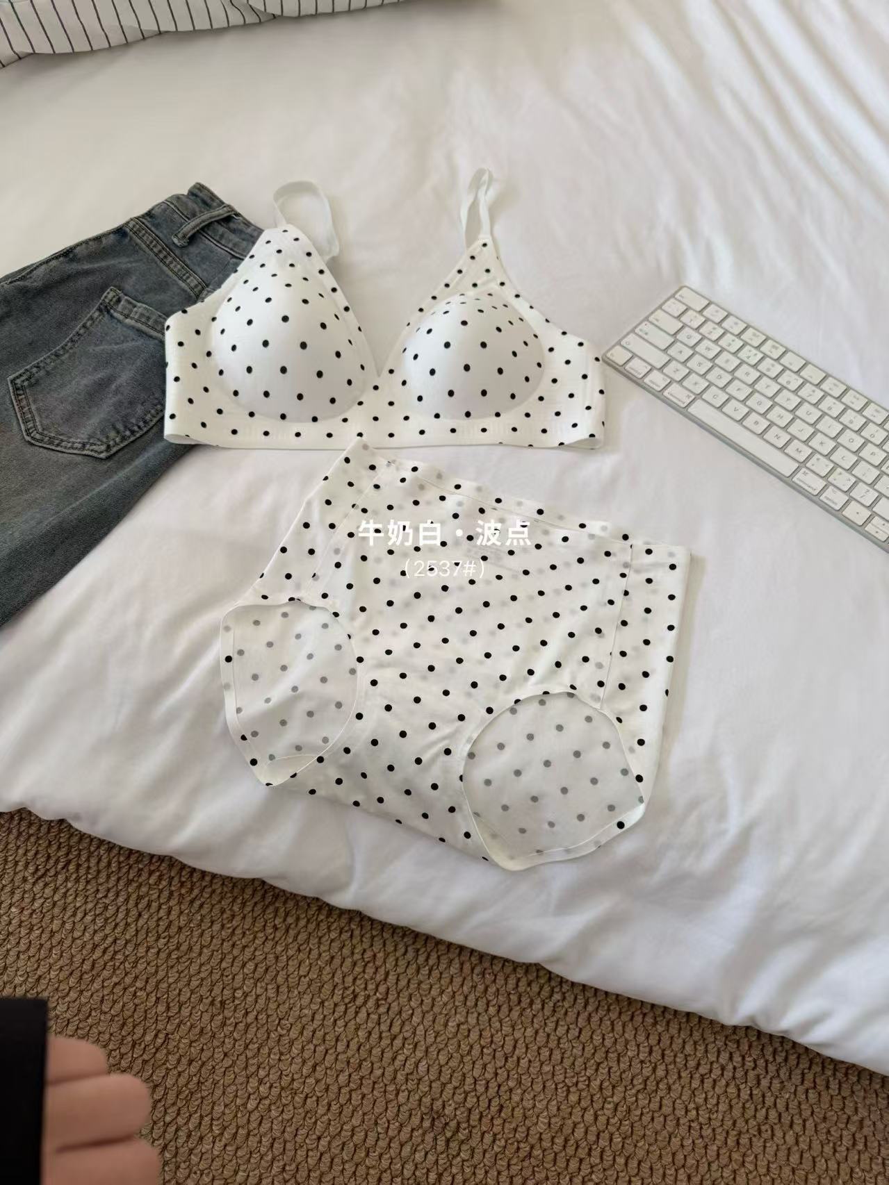 复古波点甜美套装珠光缎面高级轻柔无痕小内内舒适亲肤波点套装棉