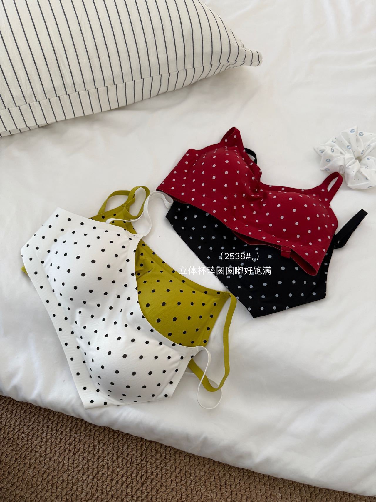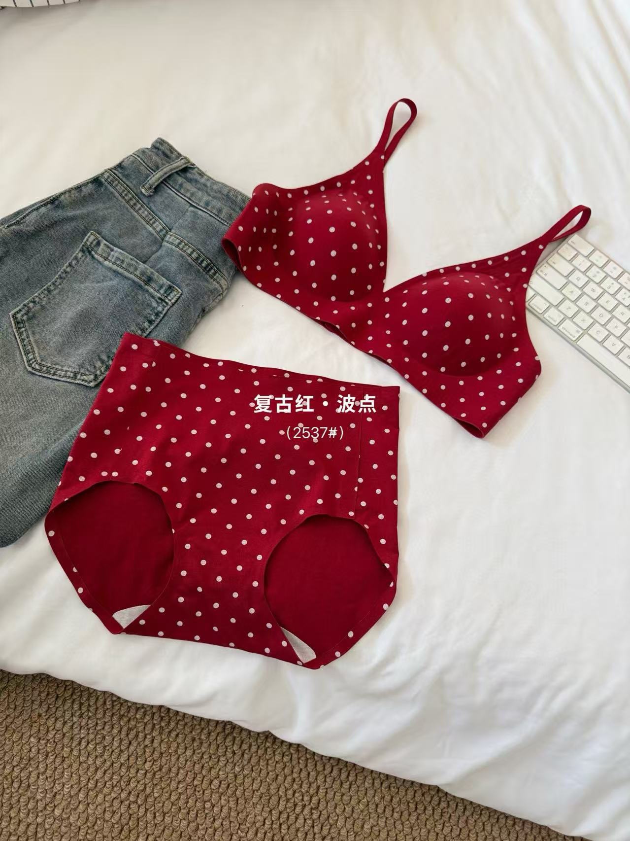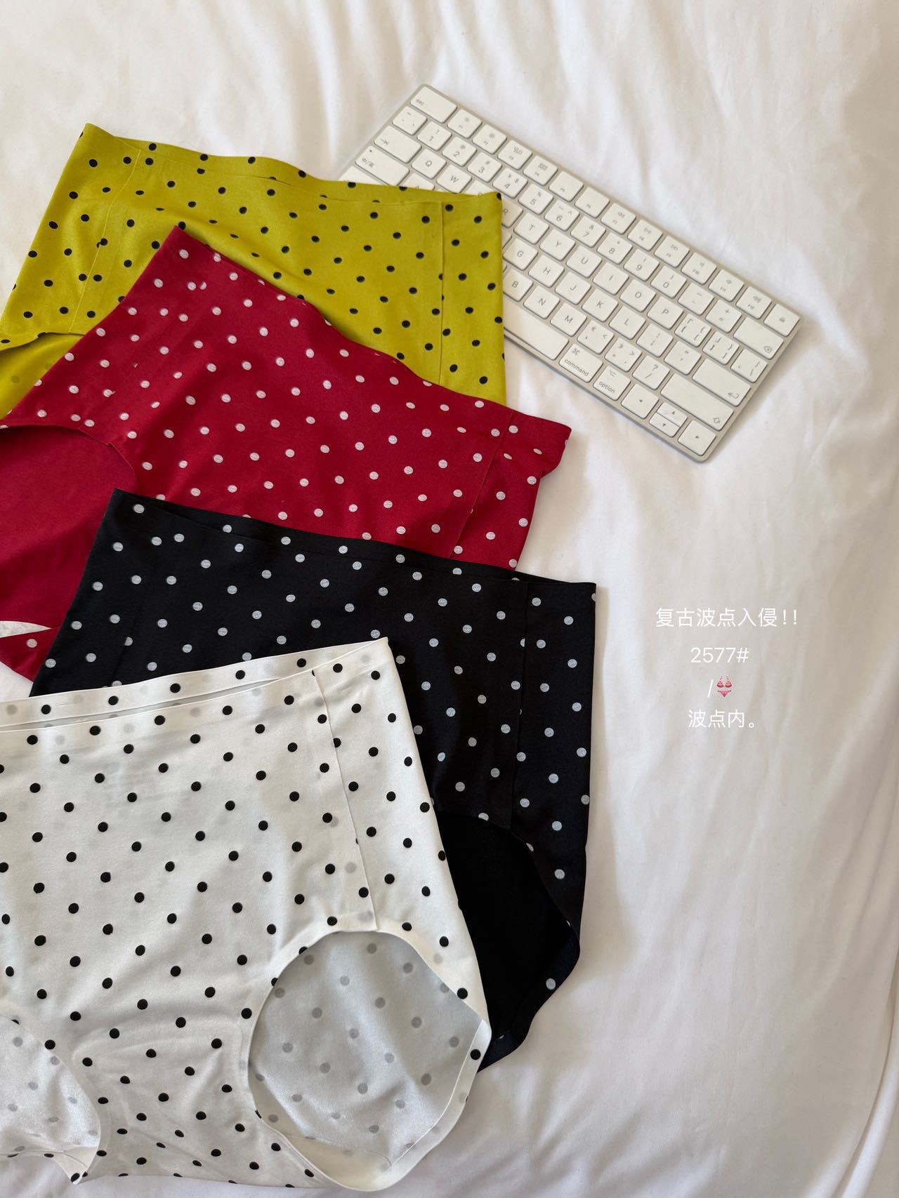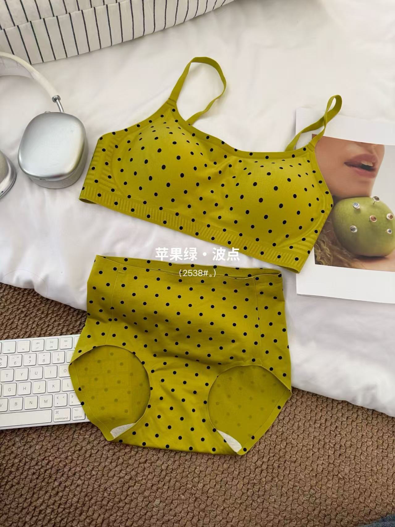 复古波点甜美套装珠光缎面高级轻柔无痕小内内舒适亲肤波点套装棉