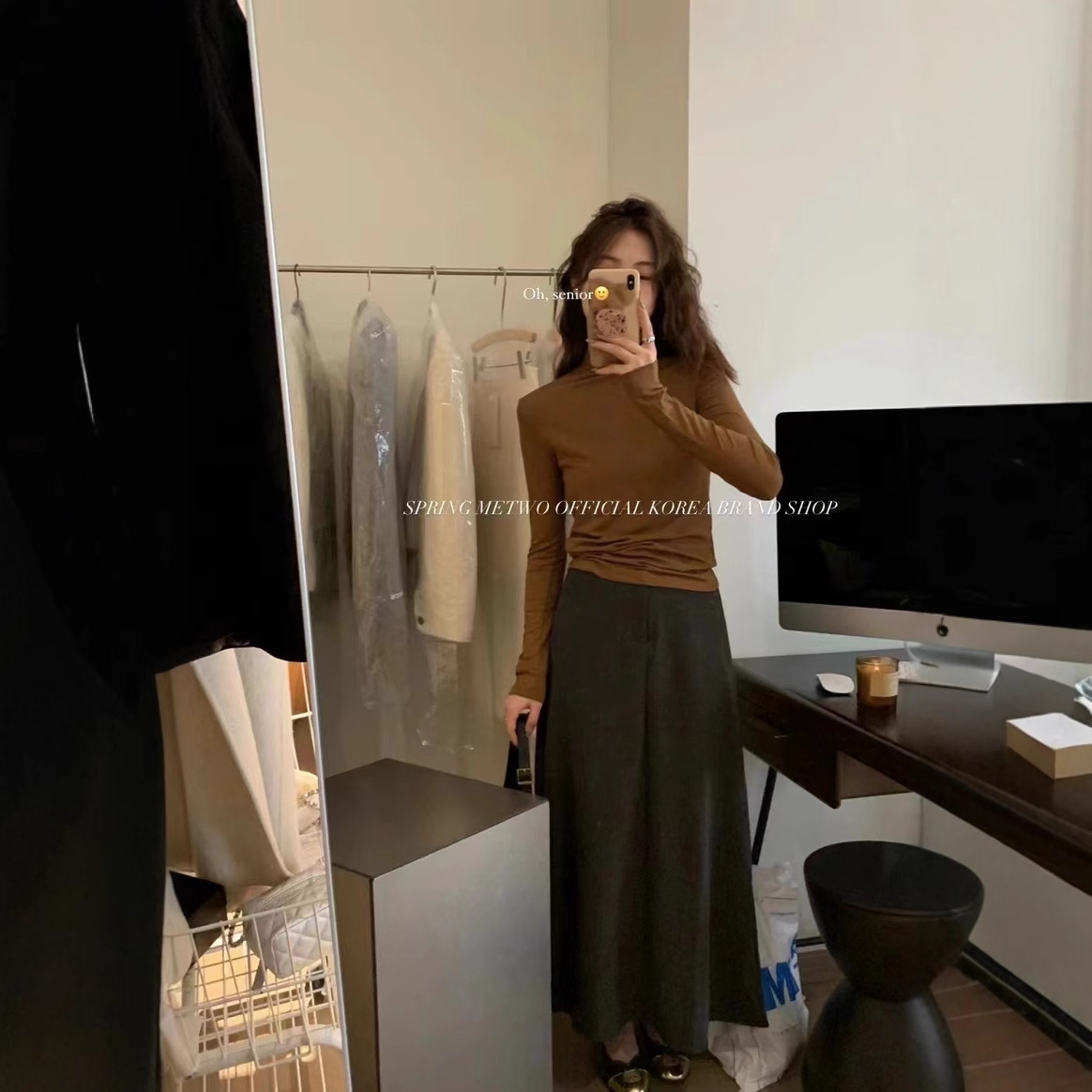 METWO秋冬新作万能ベーシックハーフタートルネックインナーウェアレディース肌に優しいストレートショルダー無地長袖トップス