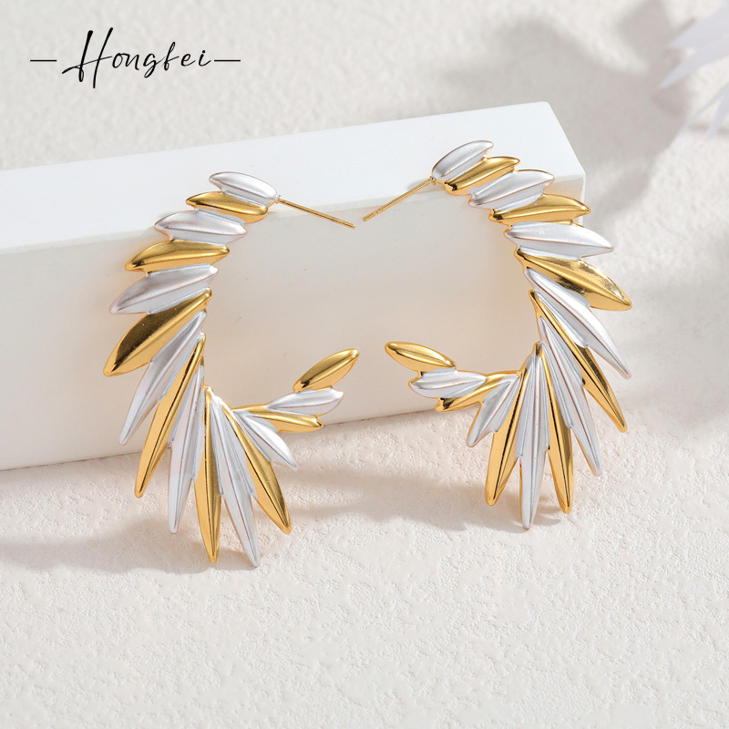 跨境爆款不锈钢18k金羽毛耳钉耳环ins网红风不掉色耳环冬季高级感