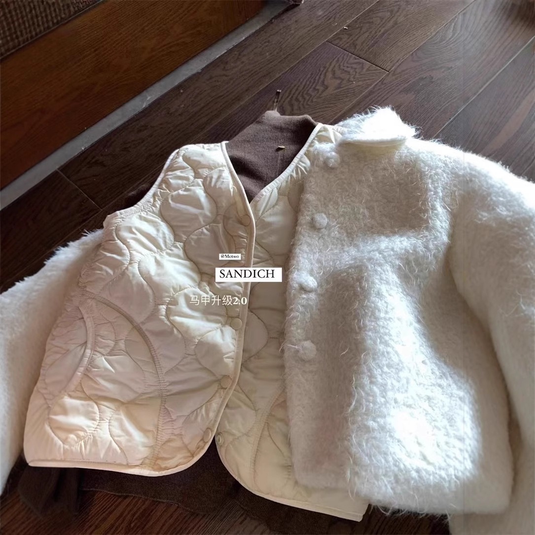 M * two2242サンドイッチ2.0v襟保温菱格馬甲女2024年冬袖なしカン肩入り女